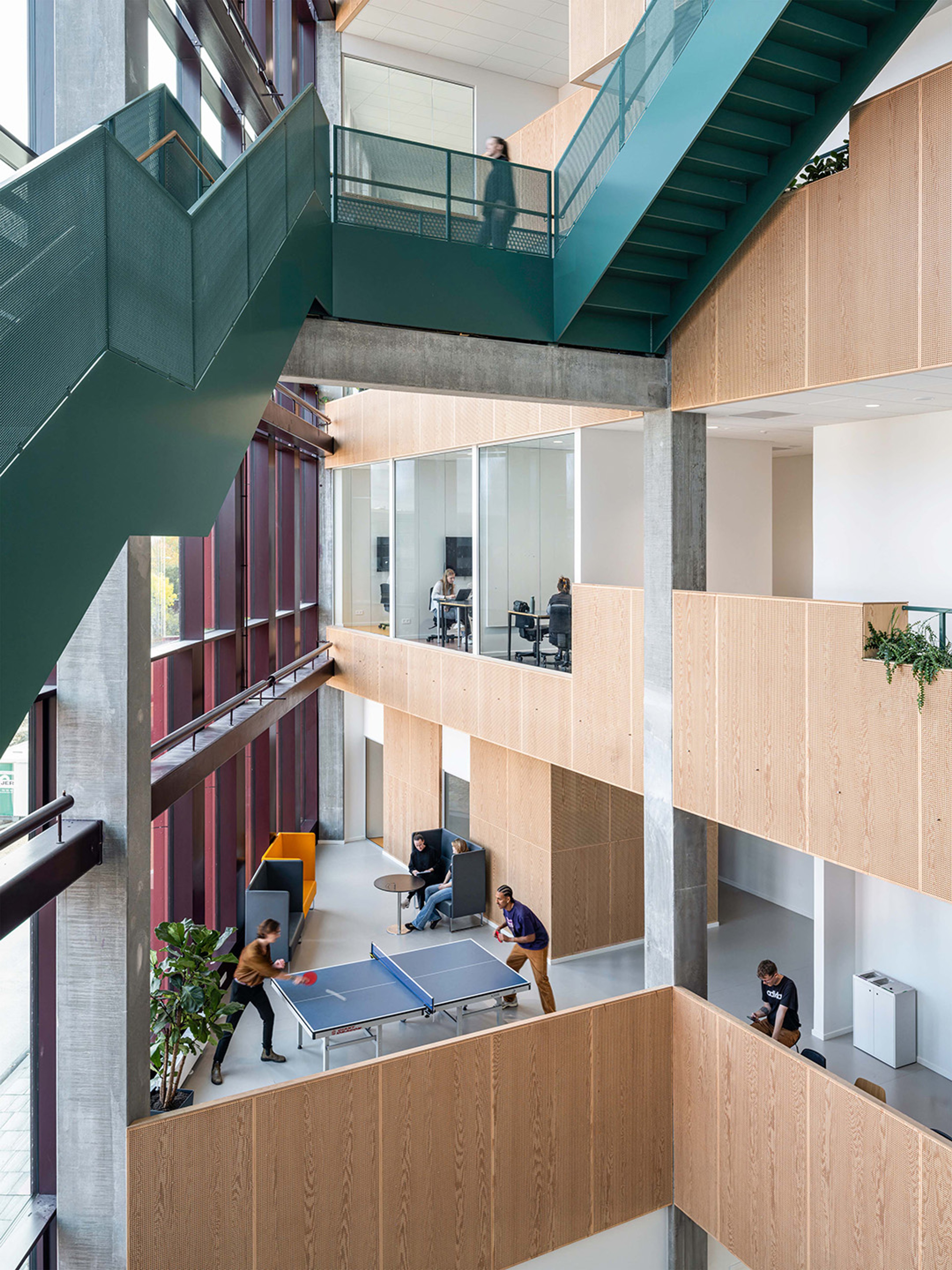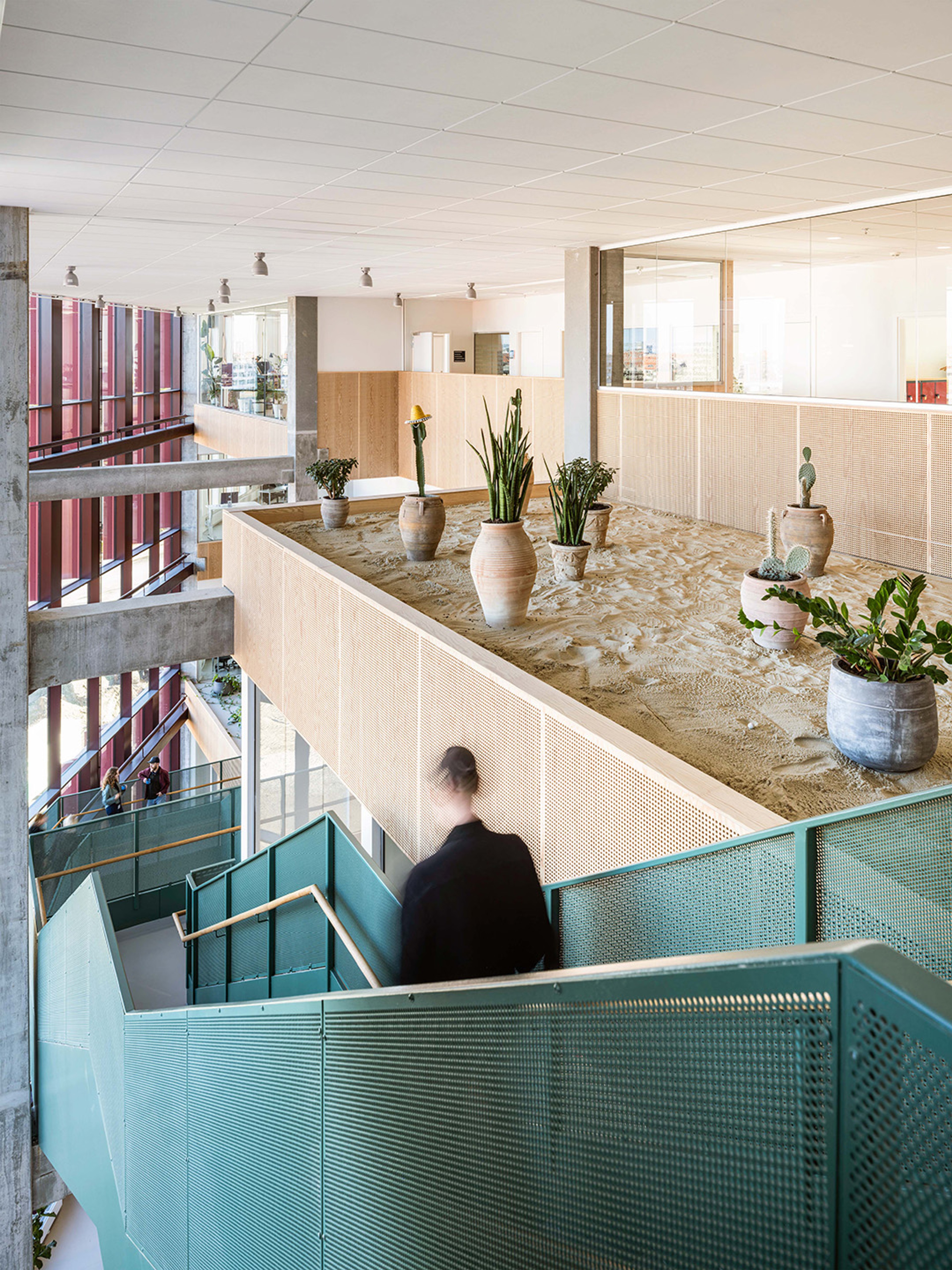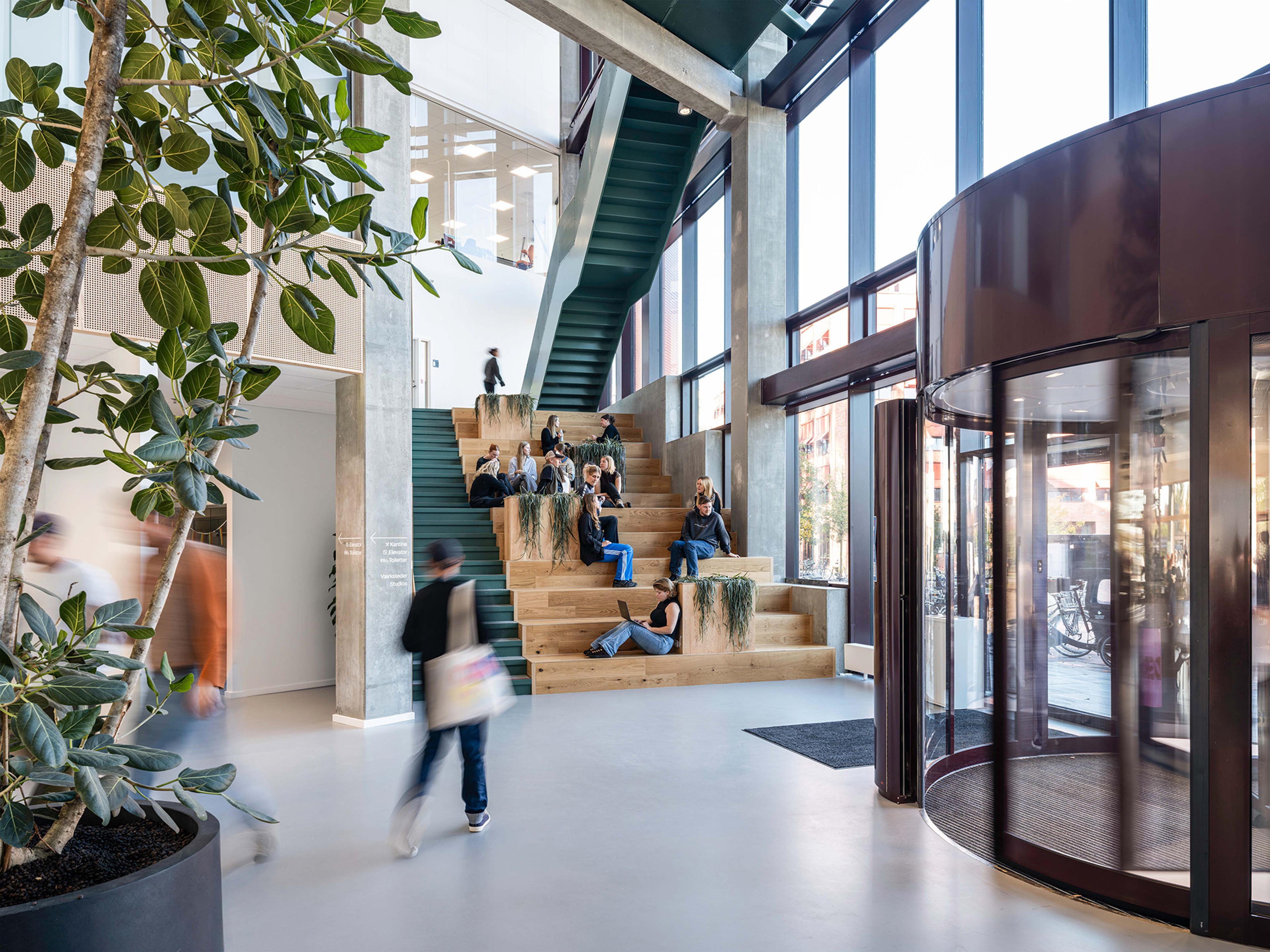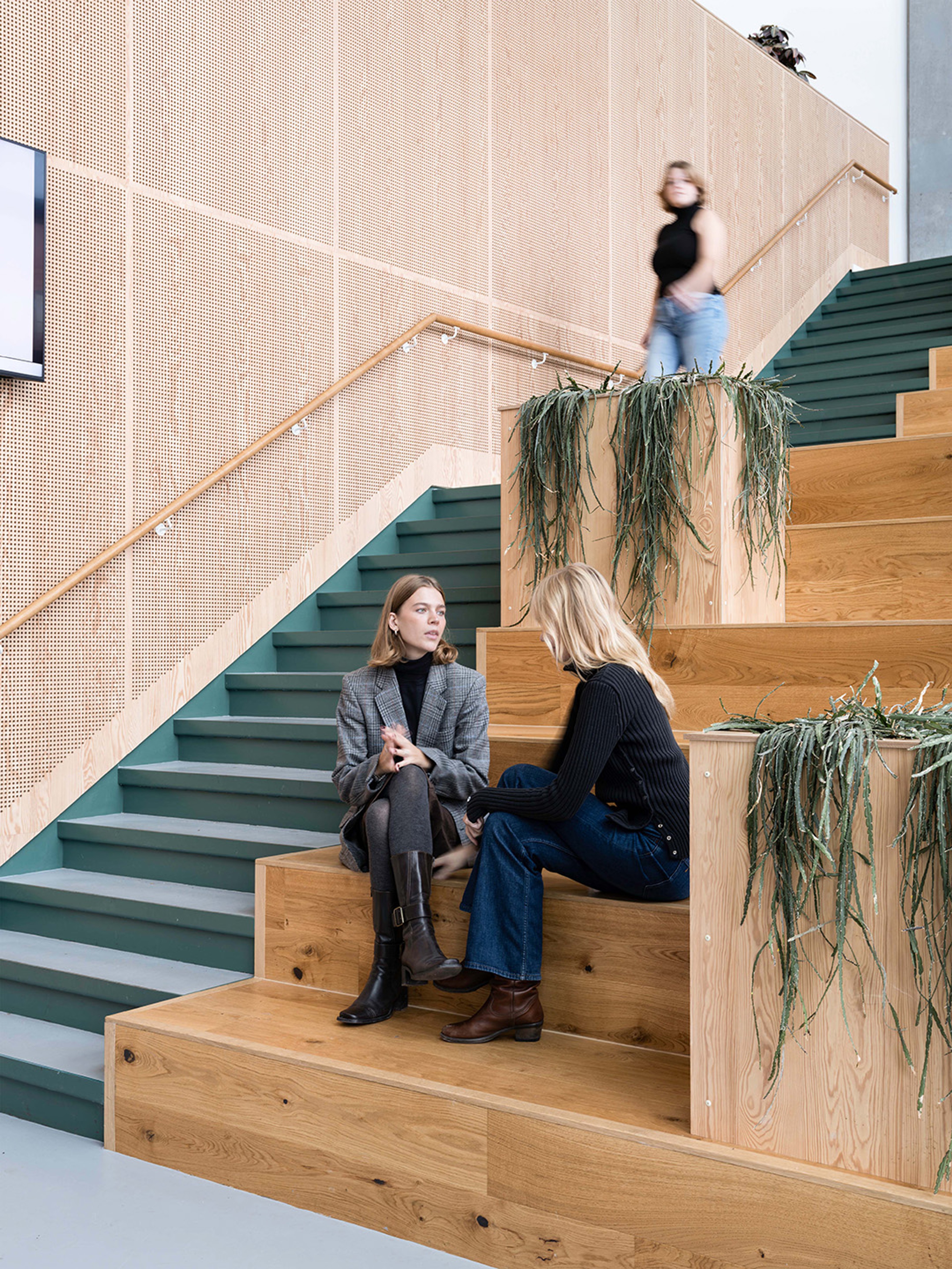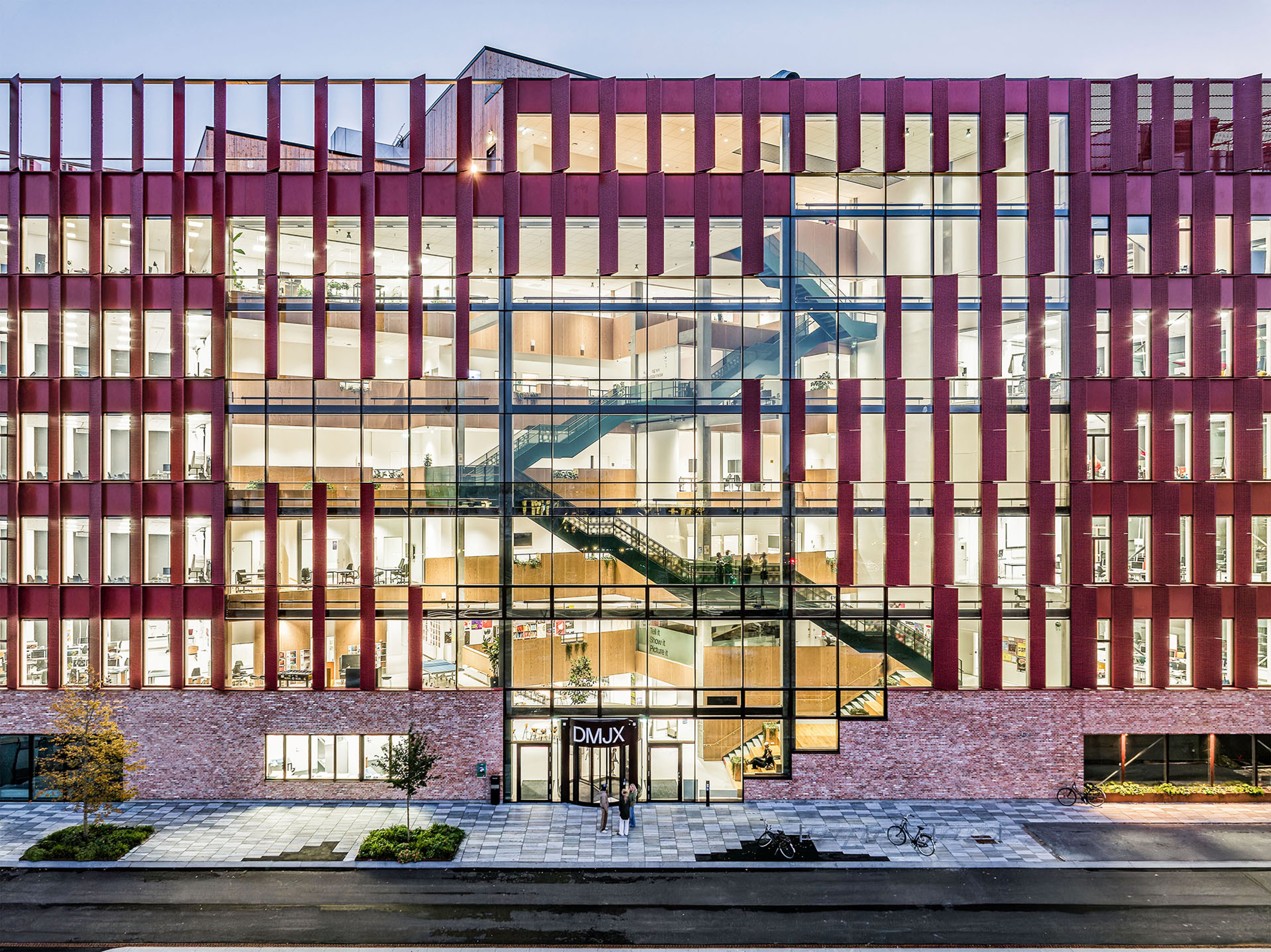 Peeking in from the outside, one immediately senses that DMJX Copenhagen is a dynamic, creative, and forward-thinking environment. From the bold, bright façade to the green staircase spiraling up through the atrium, this is a campus that exudes ‘DMJX’. And, with the focus on sustainability, flexibility and well-being at the core of the design, it’s made for the future.