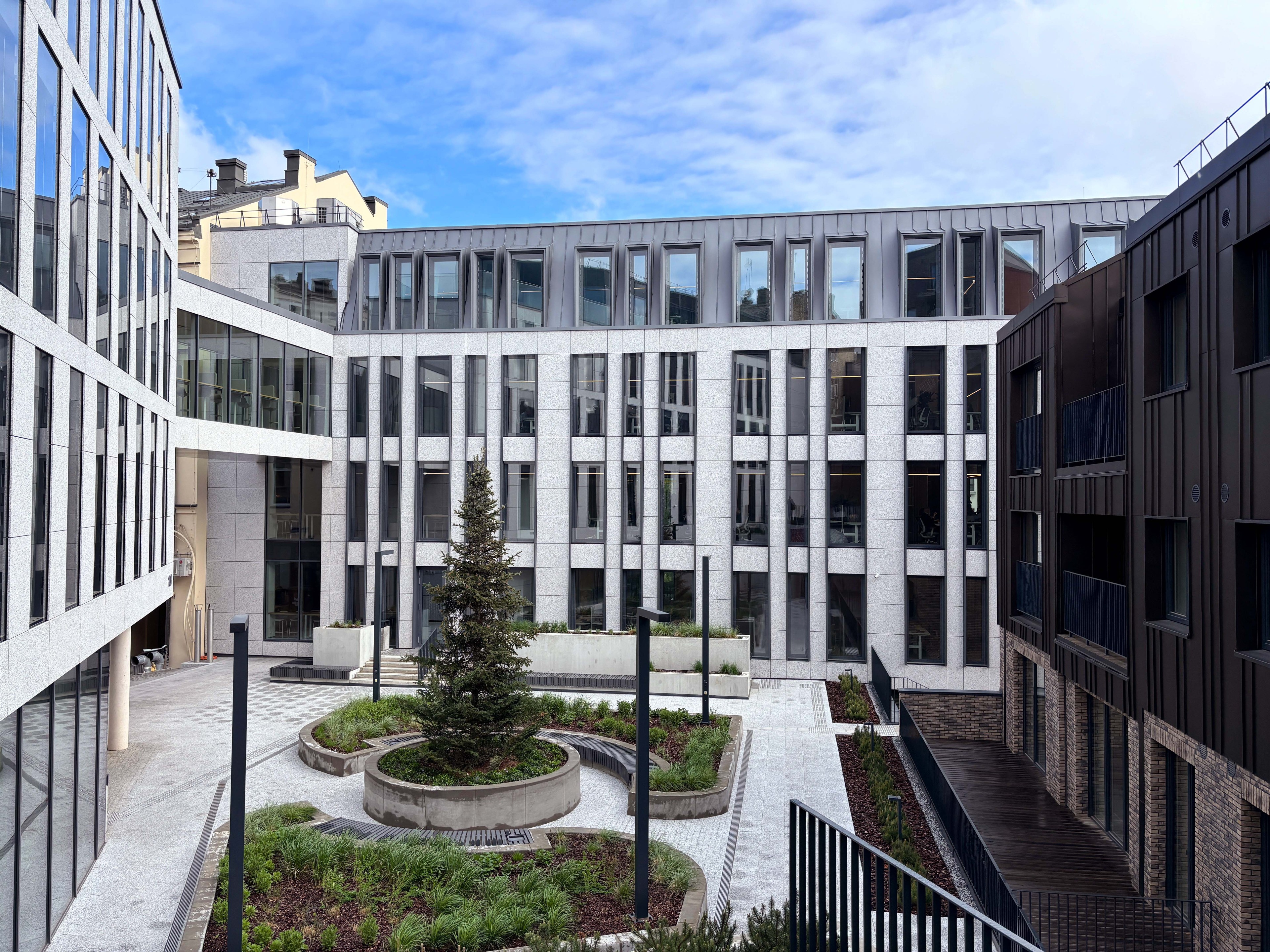 The project for Lietuvos Draudimas in Vilnius prioritises community and the surrounding context of the neighbourhood. The new headquarters, along with three apartment buildings, are designed around a lush, green courtyard that promotes connection among residents and employees. By blending modern architecture with the historic charm of J. Basanavicius Street, the project creates inviting public spaces. A key focus for the project has been adapting the historic street scene to the design of the new buildings.