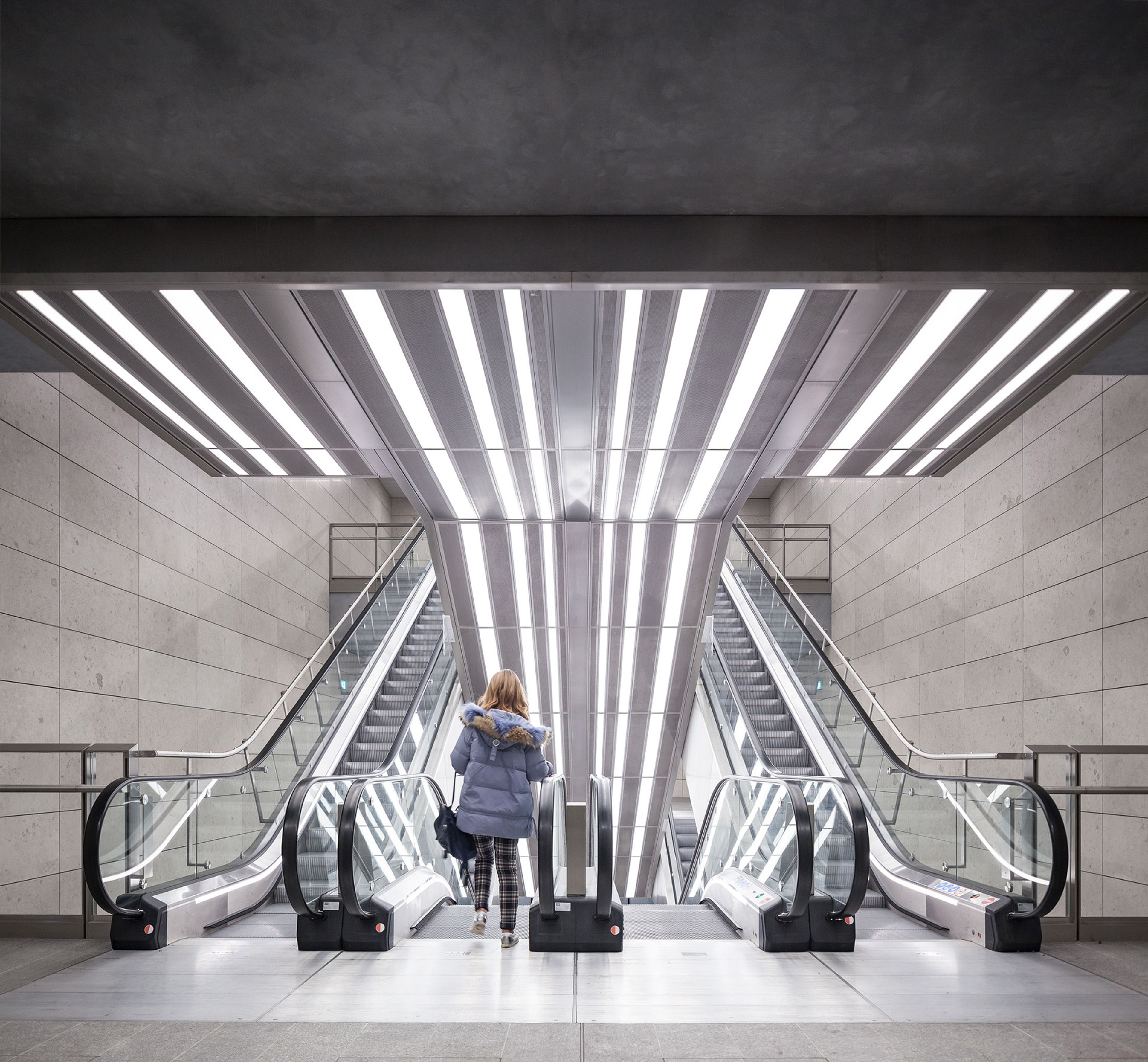 The design of the terrain above the stations respects and compliments the diversity of the urban spaces in which the Circle Line’s stations sit. Local variations have affected the design of certain elements, such as stairways and skylights. In addition to providing the subterranean cityscape of the Metro with daylight, at some locations, skylights have been designed to function as integrated and attractive features of the cityscape above ground level, thereby providing an interactive link between the public street and the metro below.