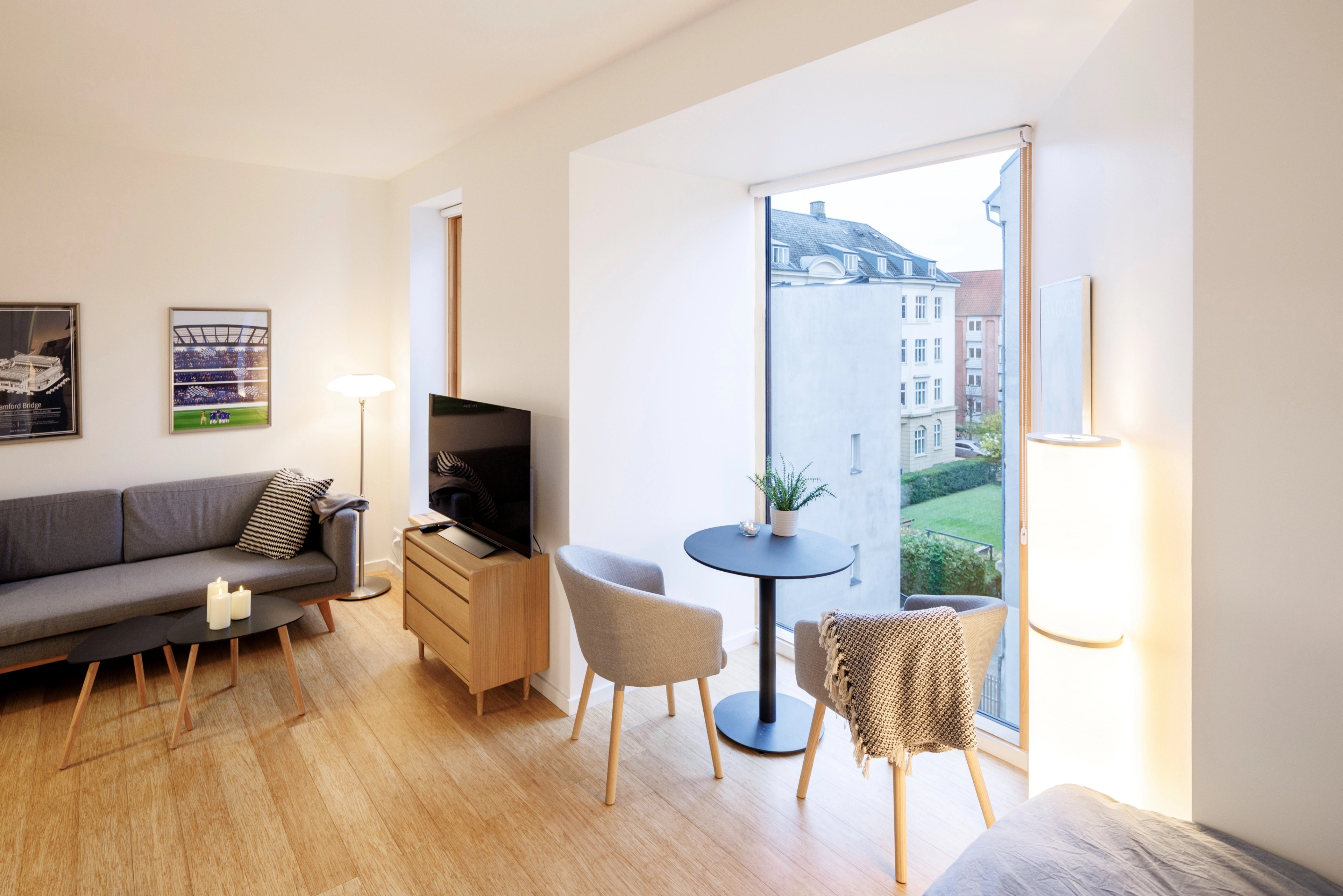 The housing offer, Vinklen on Thomas Laubs Gade, features homes that provide room for both development and community. The building accommodates 12 residents, and each unit is equipped with its own kitchen and bathroom. In addition, the building includes a range of shared facilities that function as natural meeting points. On the ground floor there is a shared living room with kitchen, as well as a project workshop where residents can develop interests and skills. The project workshop also provides a setting for various initiatives and events in collaboration with residents, local networks, and the surrounding neighbourhood. In the basement there is a shared laundry and individual storage rooms for each resident, and the building is equipped with an elevator. On the 4th floor there are service areas that serve as the staff’s base and office, as well as a smaller shared lounge with access to terraces facing both the street and the courtyard.