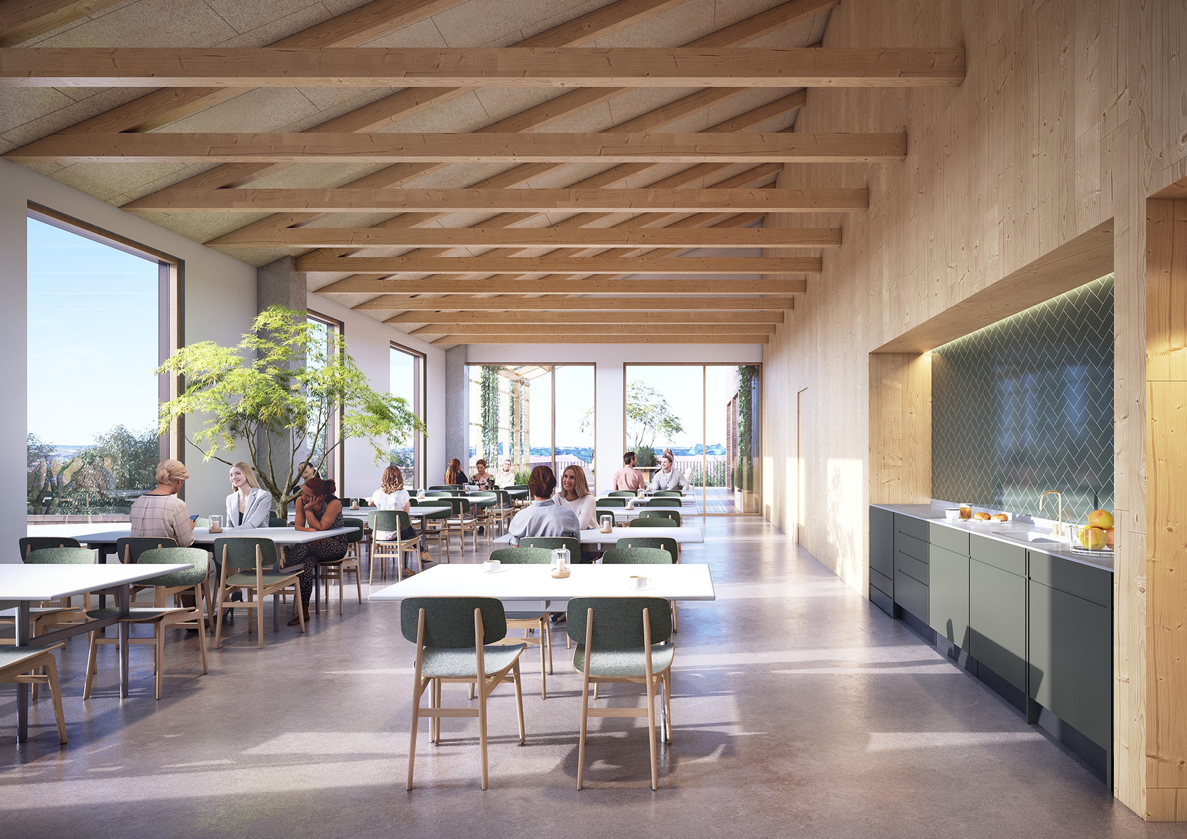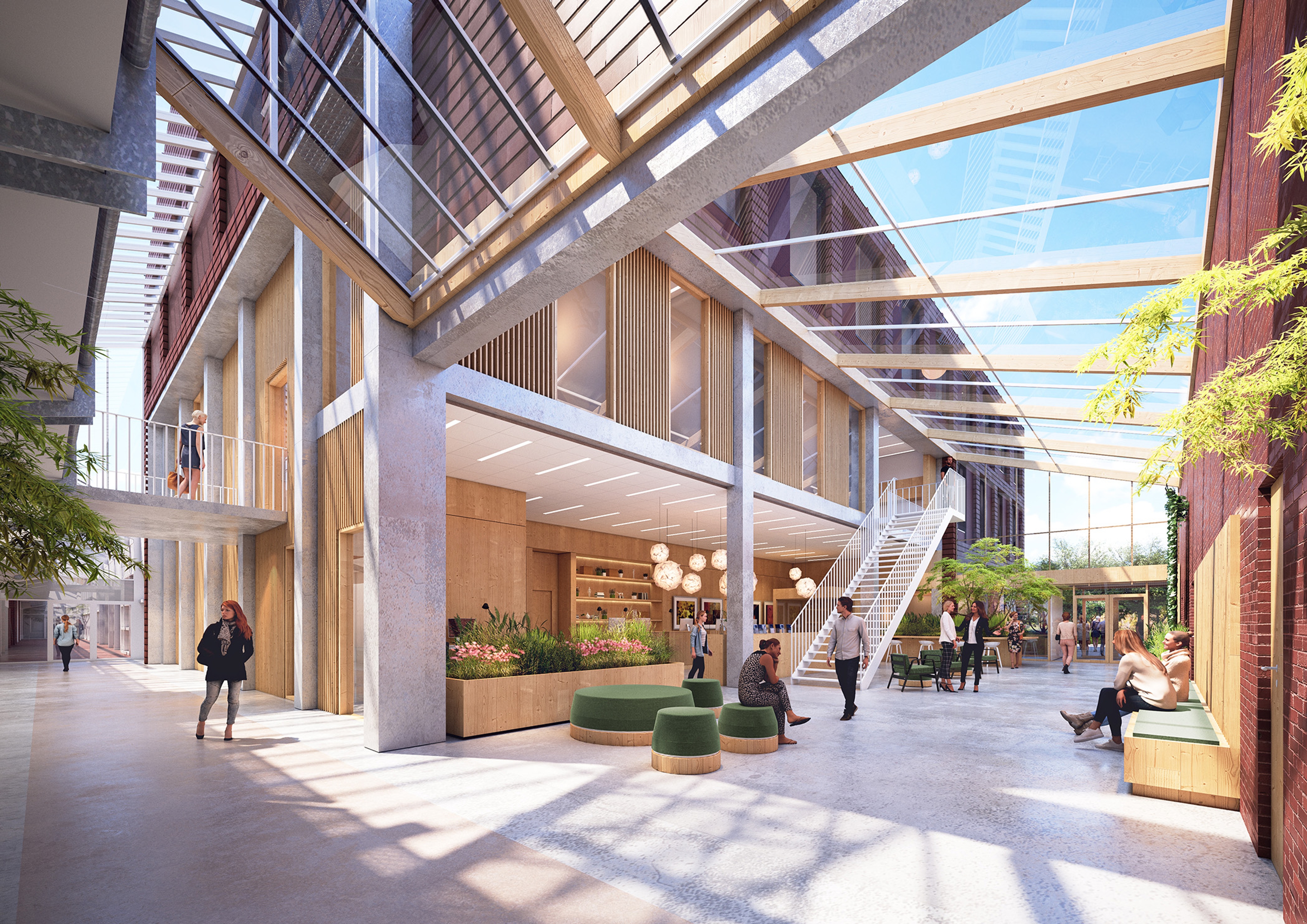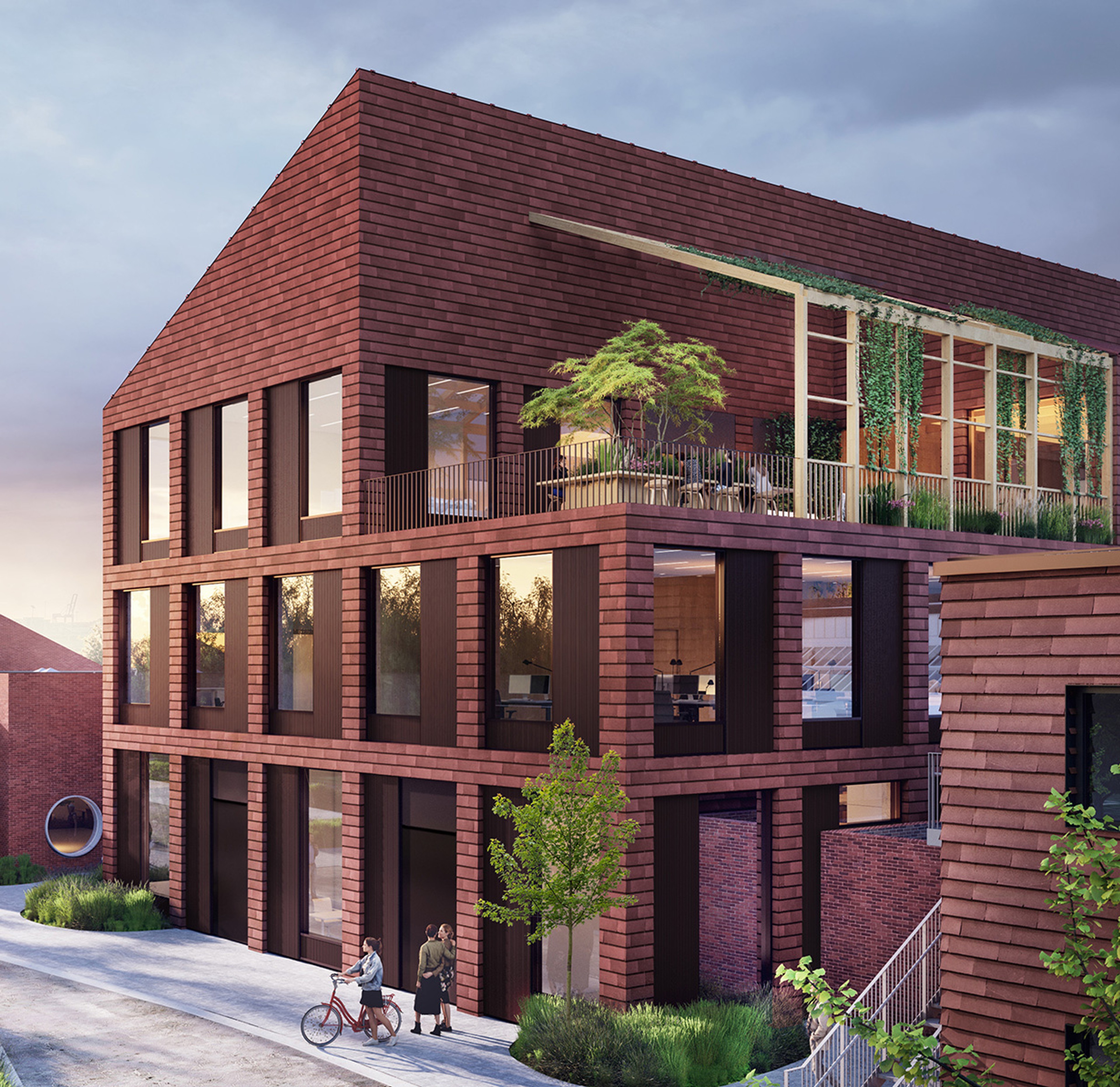 The new addition features red brick façades, pitched roofs, and wooden interiors, bridging old and new. Sustainability is key: the design incorporates CO₂-reducing materials like timber, rooftop solar panels, and durable construction solutions, ensuring a low carbon footprint that meets stringent emissions standards.