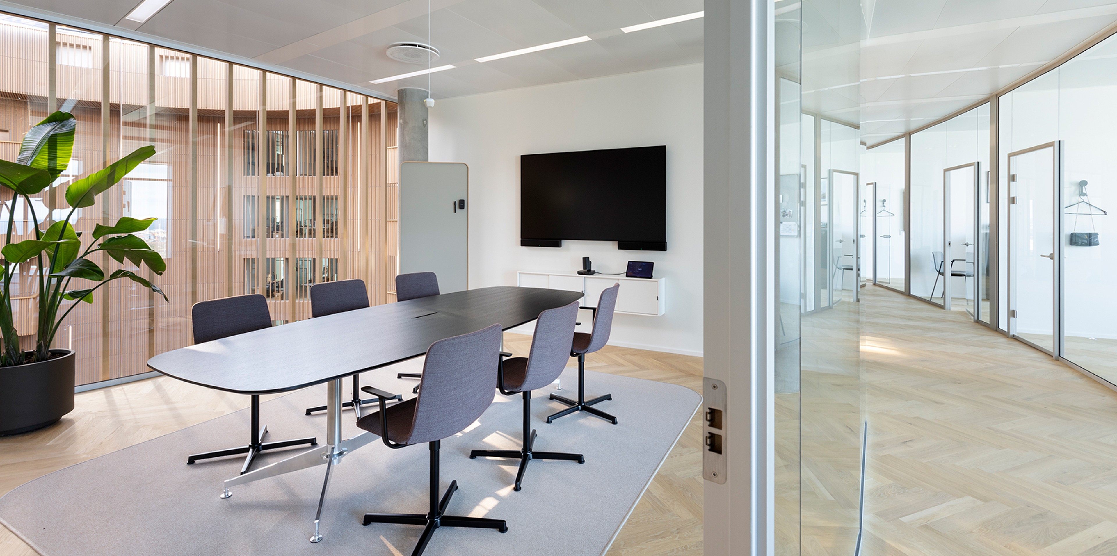 Mødelokale med udsigt til bygningens kerne