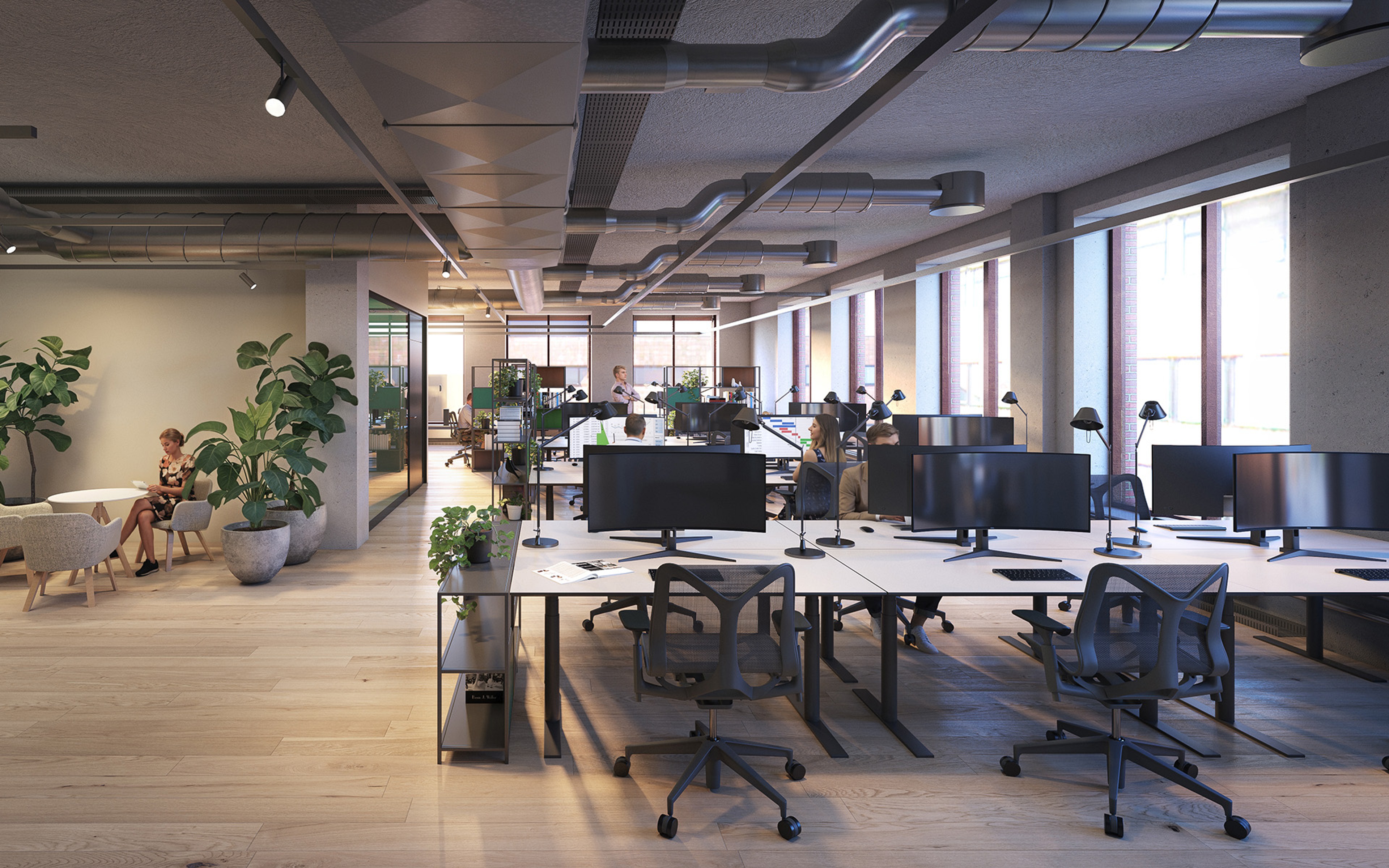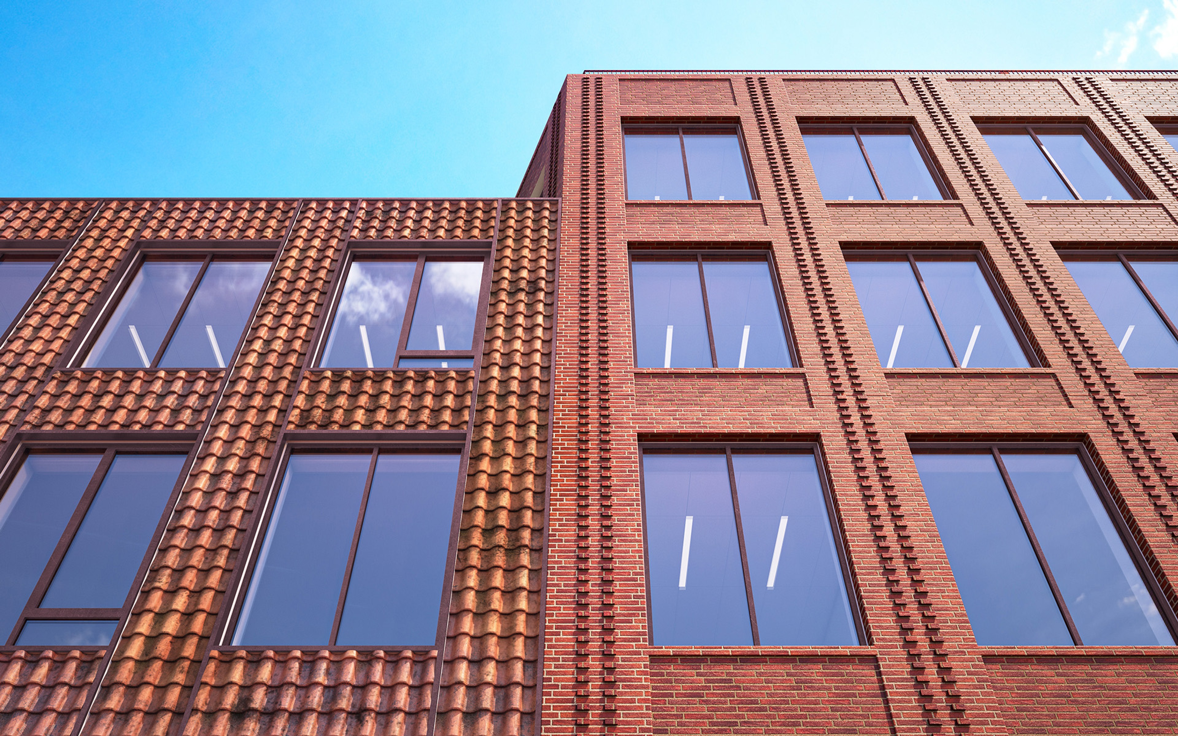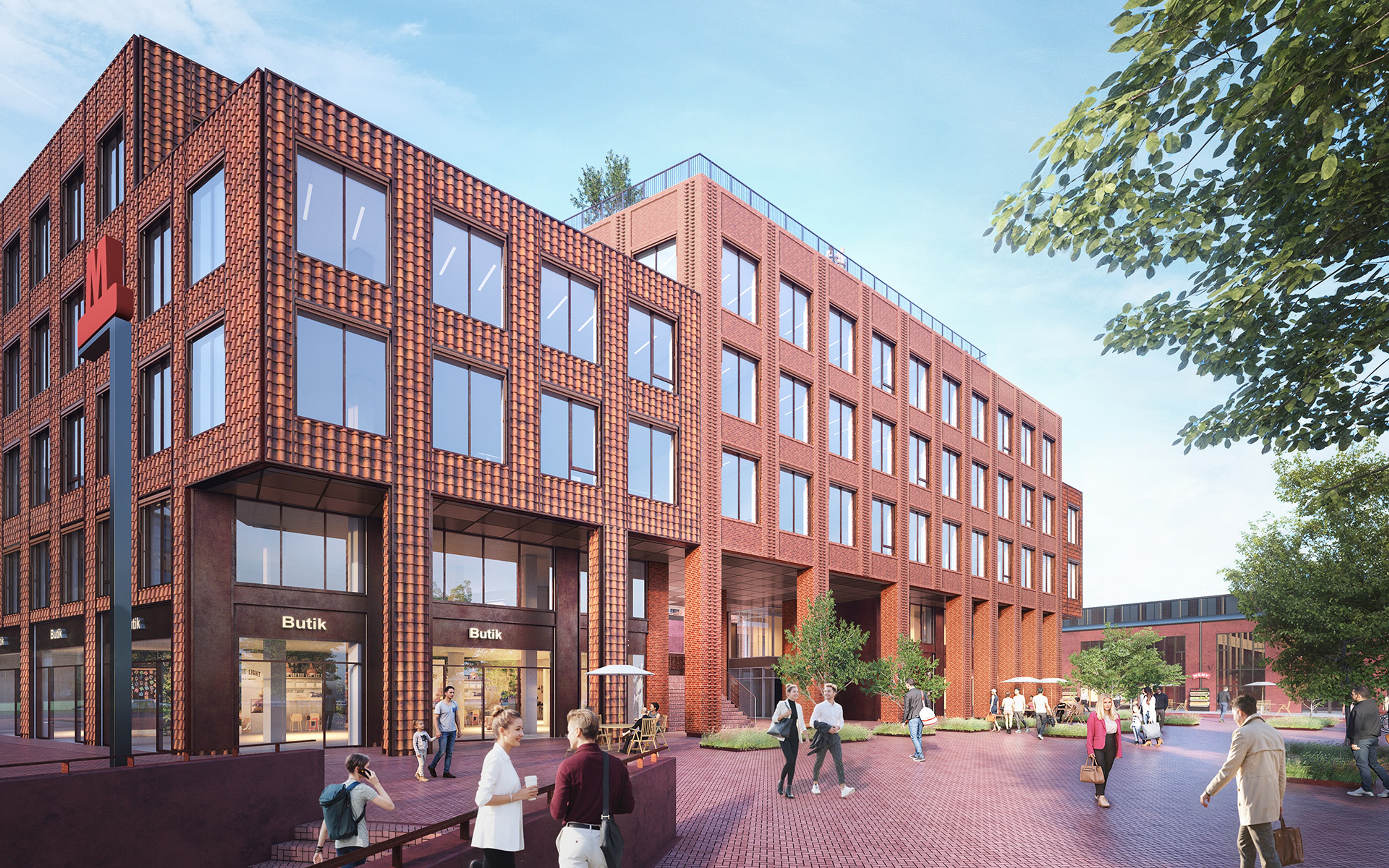 Ved at forene detailhandel, erhverv og fleksible kontormiljøer bliver denne gennemtænkte røde teglbygning med genbrugte vingetegl et dynamisk vartegn ved indgangen til Københavns nordhavnskvarter.