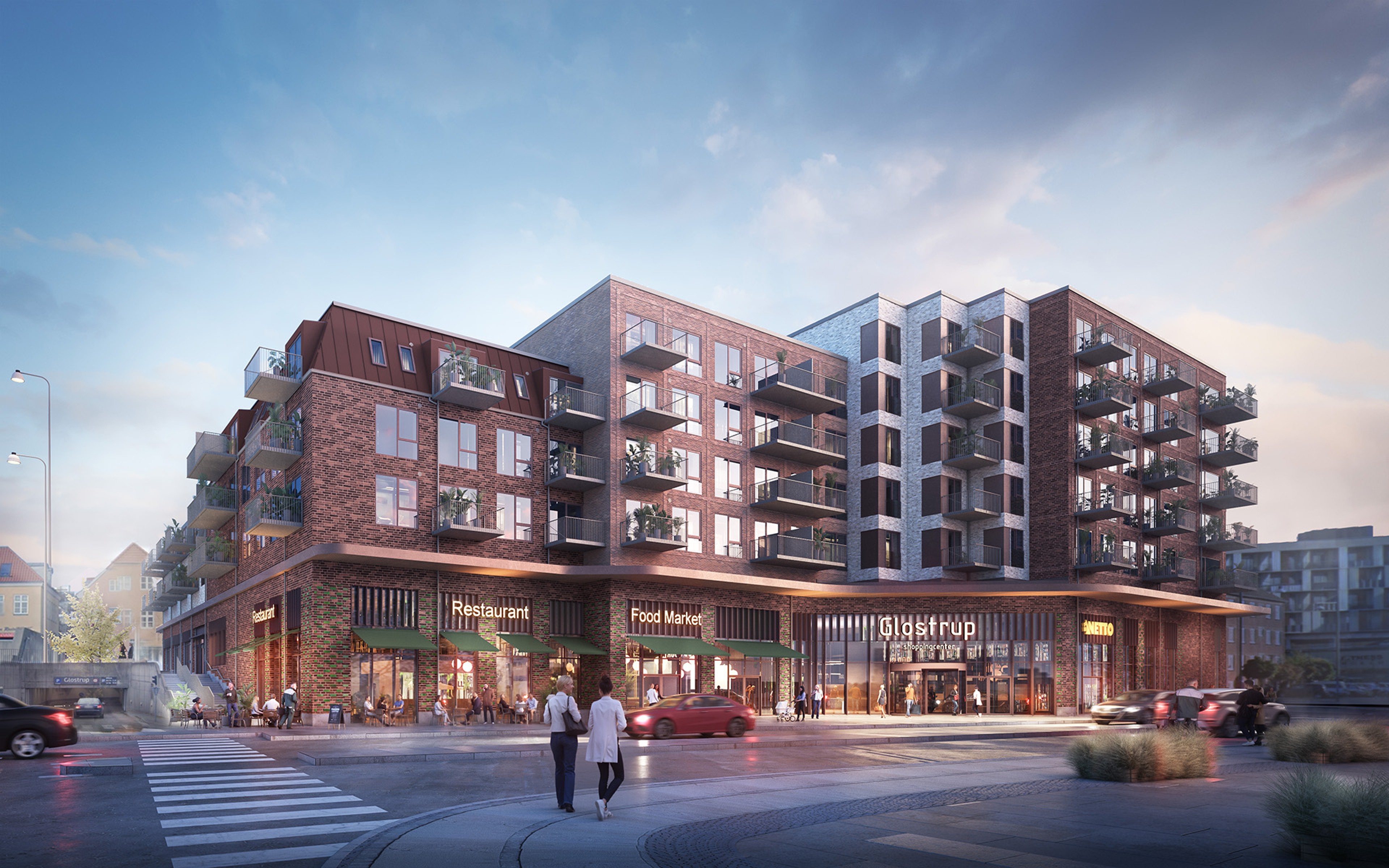 Ved at forbedre centrets udseende, fokusere på oplevelser og integrere det med omgivelserne, fornyr projektet Glostrup Shoppingcenter og positionerer det som et oplagt besøgsmål. Det nye design har en åben facade med caféer, en food court og meget mere, der vender ud mod gaden som en naturlig forlængelse af det urbane rum. Indenfor forstærker naturlige materialer forbindelsen til byrummet og skaber samtidig en behagelig atmosfære. Projektet indebærer også, at der skal opføres 187 nye boliger oven på centret, herunder studieboliger, hvilket vil bidrage til et livligt bymiljø.