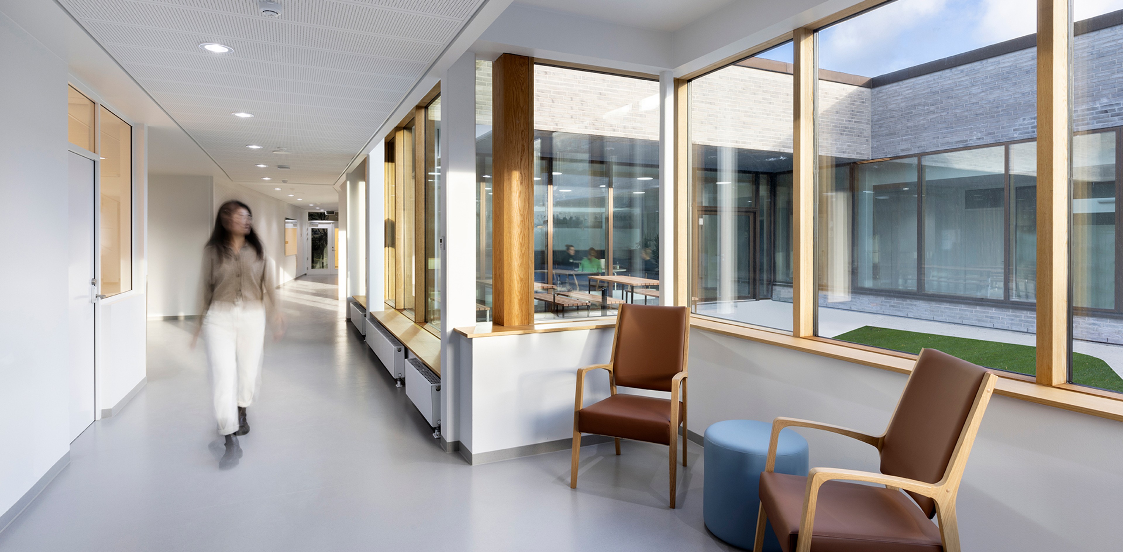 Nana Stengade Troelsgaard, Lead Therapist, Psychiatric Center CopenhagenDe arkitektoniske rammer er noget helt særligt. De er både smukke og har stor indflydelse for patienternes trivsel. Vi får eksempelvis store glasfacader ud til de indre gårdhaver, der trækker lyset ind i hele sengeafsnittet, hvor der også er et stort og lettilgængeligt multirum. Vi kan tilbyde mange forskellige aktiviteter, fordi rumindretningen både indbyder til fysisk træning, fordybelse, kreativitet og ro.