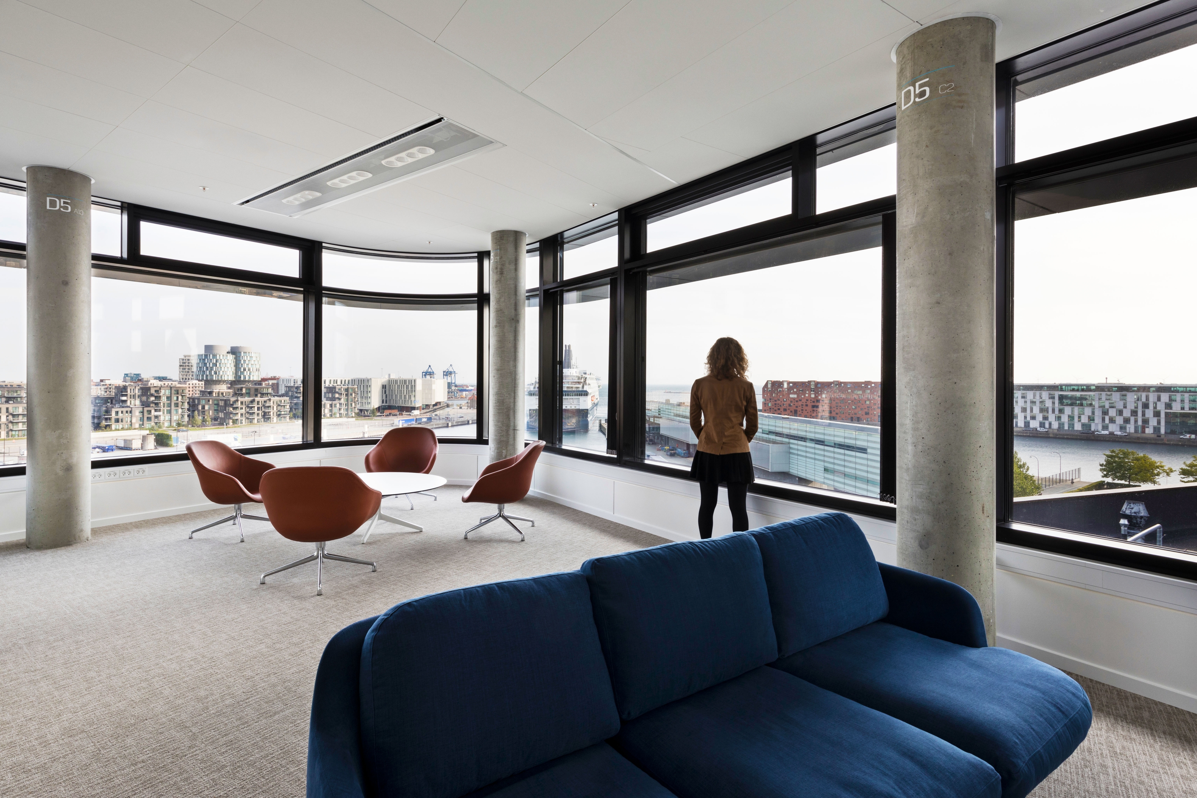 Totals hovedsæde er designet med mennesker i centrum. Hovedsædet understøtter ikke blot medarbejdernes samarbejde og innovation, men forbedrer også den samlede oplevelse på arbejdspladsen. Bygningen, der oprindeligt blev opført til Maersk Oil og nu har fået nyt navn under Total, er et iøjnefaldende syn med sit buede hjørne ud mod Kalkbrænderihavnsgade. Designet skaber en indbydende indgang til bygningen, hvor boliger, kontorer, butikker og spisesteder ligger side om side. I stueetagen er der fem meter højt til loftet, og det forvandler den til en halvoffentlig zone og indbyder til samvær. Åbenheden inviterer ikke kun medarbejderne, men også lokalsamfundet til at engagere sig, hvilket forbedrer den sociale dynamik i området.