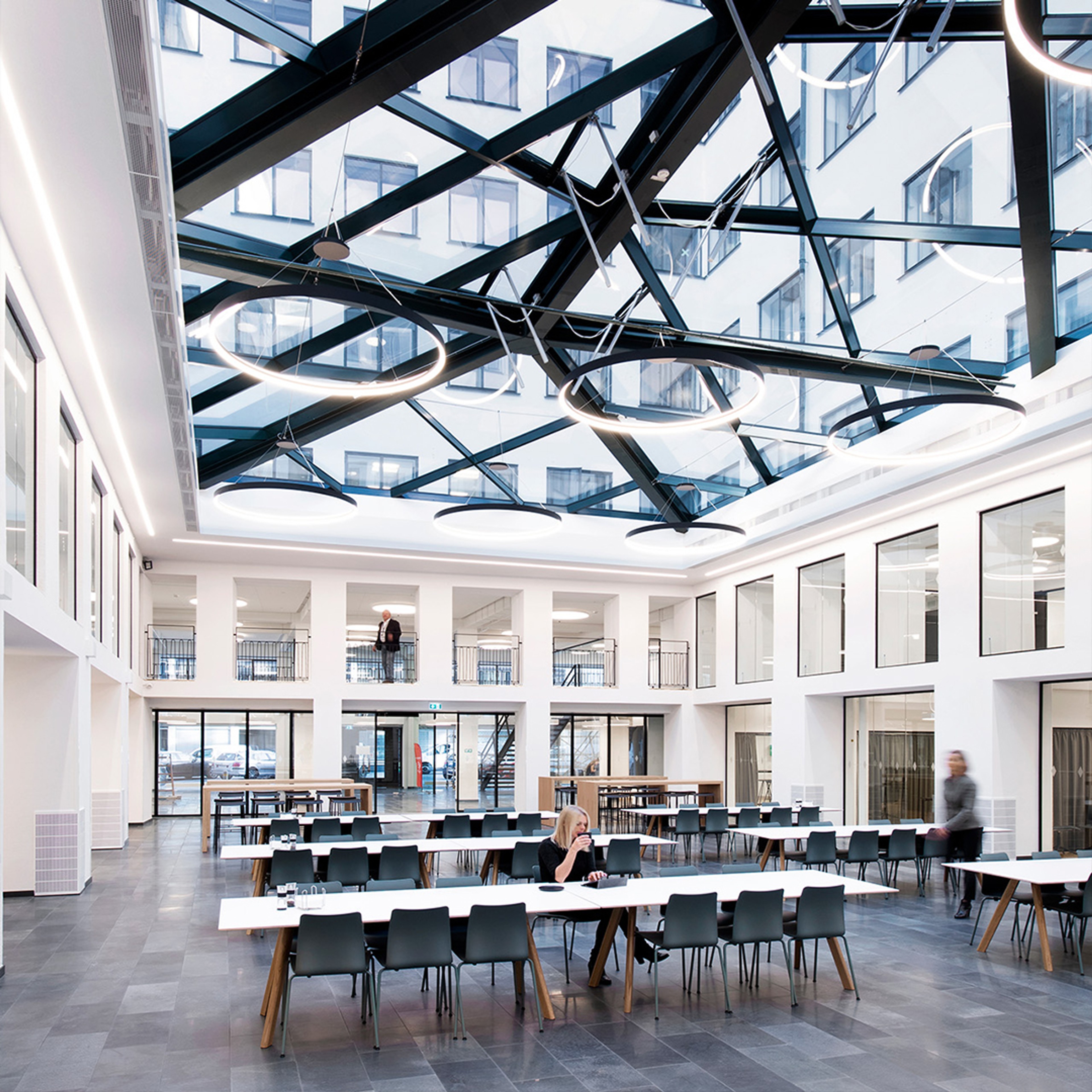Et af de styrende elementer har været betydningen af naturligt lys og fleksible rum for at forbedre arbejdsmiljøet. Ved at fjerne det oprindelige betondæk og tilføje et glastag bliver atriet nu gennemstrømmet af lys, hvilket forbedrer det indendørs miljø. Det nye indgangsparti samt lobbyen øger bygningens forbindelse til byen og gør den indbydende for både medarbejdere og besøgende.