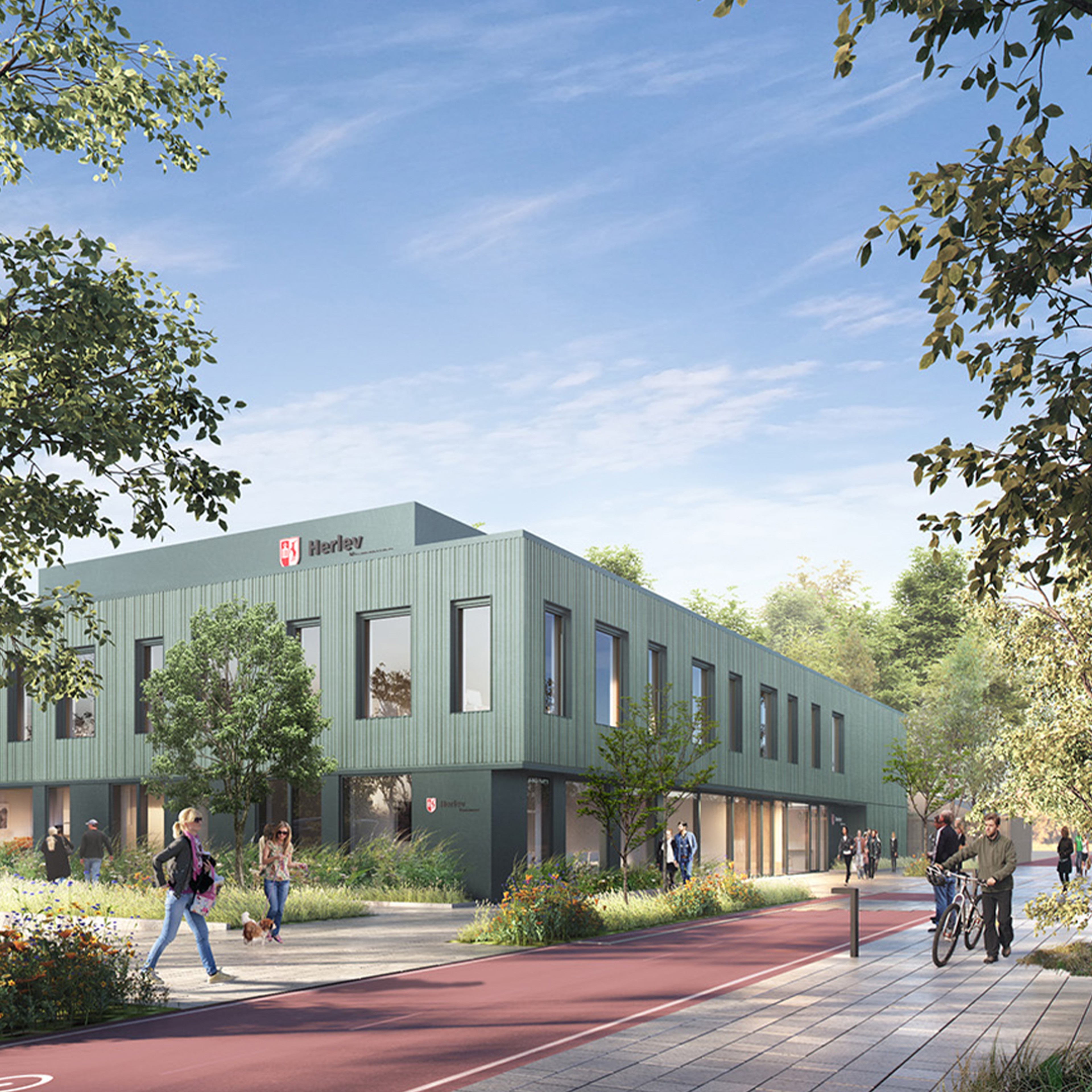 Embraced by the lush park, the building harmonises with its surroundings through green roofs, energy-efficient systems, and biodiversity-enhancing landscaping. With flexible workstations, climate conscious choice of materials, and community-centric spaces, Hjortespring City Hall sets a benchmark for resilient civic architecture.