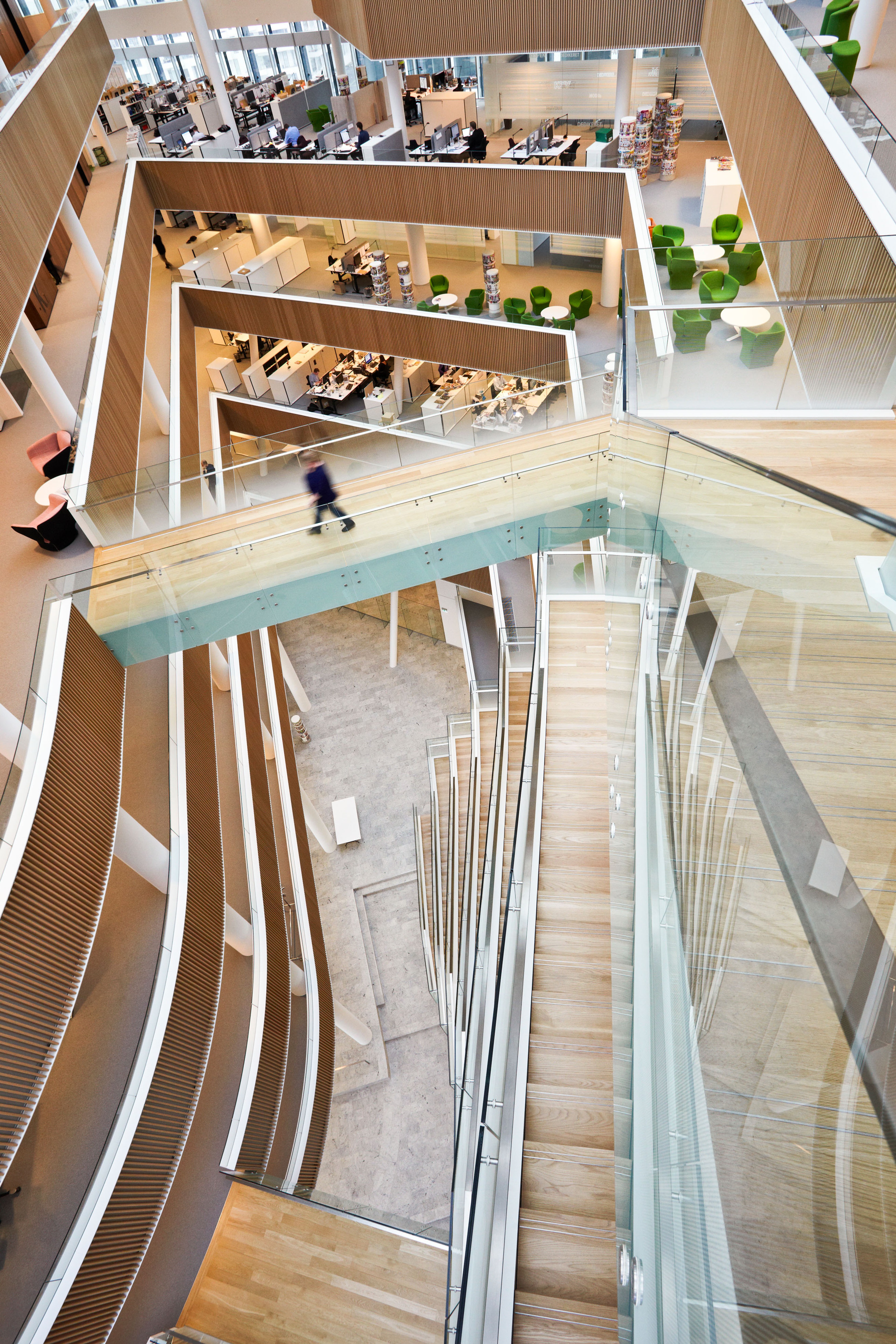 “The project makes a statement that is very difficult to ignore. Like the cutting edge of a knife, the dramatic presence of the building on the corner has an artistic power that is exceedingly convincing. The building is a ”Gesamtkunstwerk” (work of art) – everything has been carefully considered. Even the new energy and environmental requirements have been addressed – everything has been functionally developed. The atmosphere within offices and work areas is soft, inviting and warm – very compelling and of an extremely high quality. The building exudes Scandinavian sensuality. It is situated perfectly with all visual lines coming together on the ground plan. It stands apart as one the most exciting buildings in the area.”
