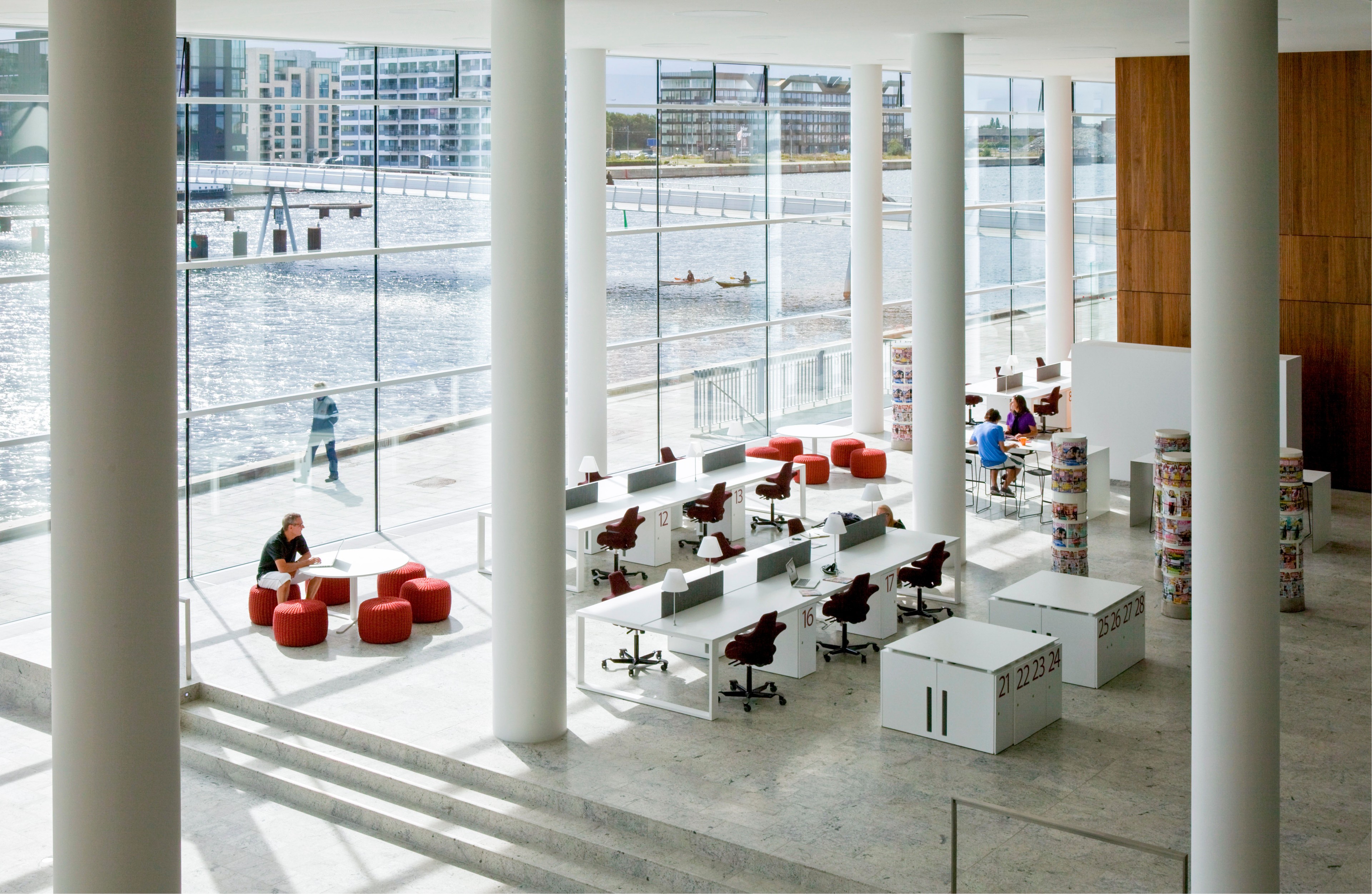 The Aller building serves as a transformative headquarters, being a tailormade multimedia building. Aller Media’s vision was to create a building that strengthens the diversity of the company with a flexible, dynamic and innovative work environment. Its design harmonises with the unique location of Havneholmen, creating a vibrant space that encourages collaboration and creativity. The central atrium floods the interior with natural light, reducing the need for artificial lighting during the day. By integrating Nordic-inspired materials and an interactive artwork that reflects the weather, the building establishes a strong brand identity. The project's 28,000 m² include the underground parking facility.