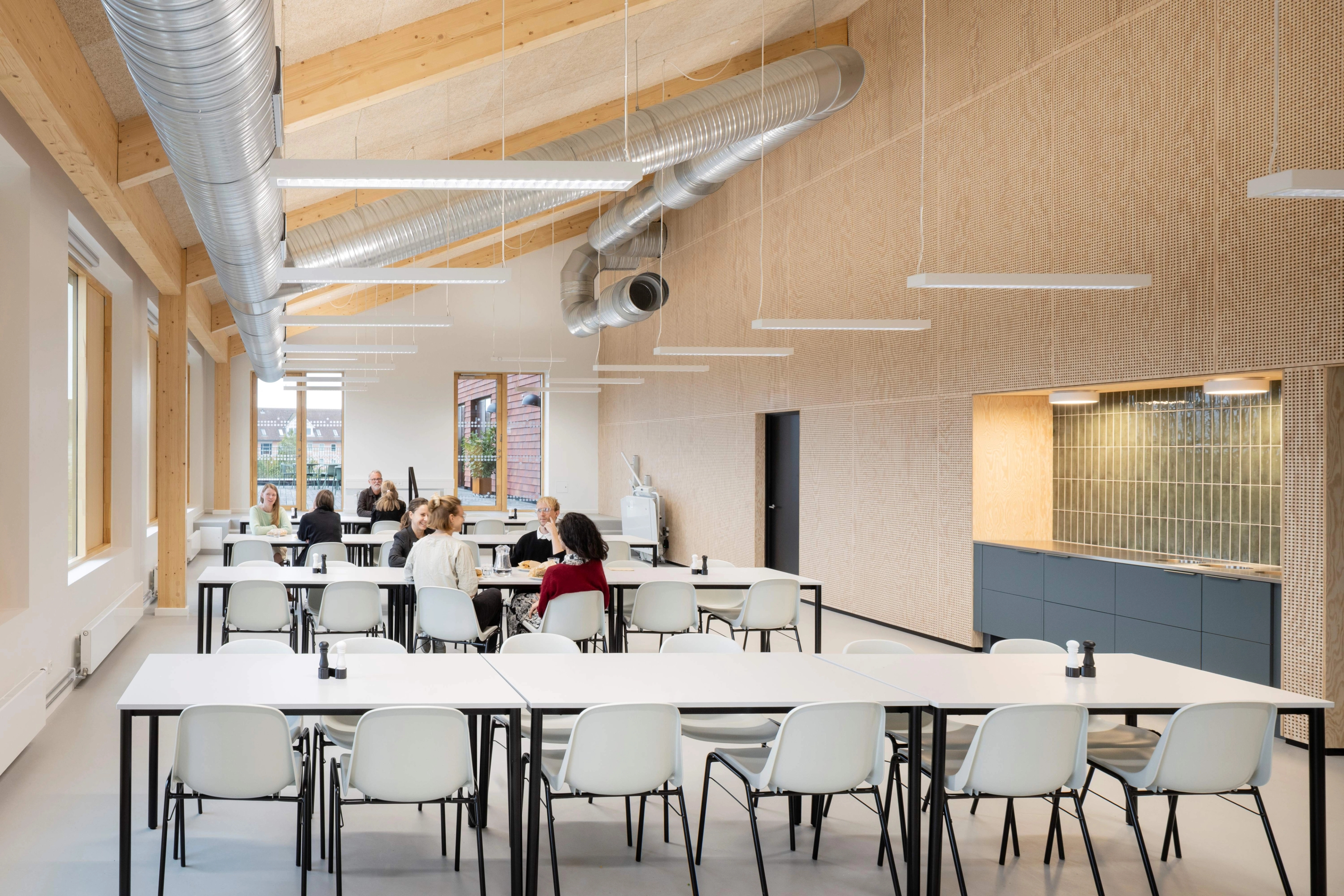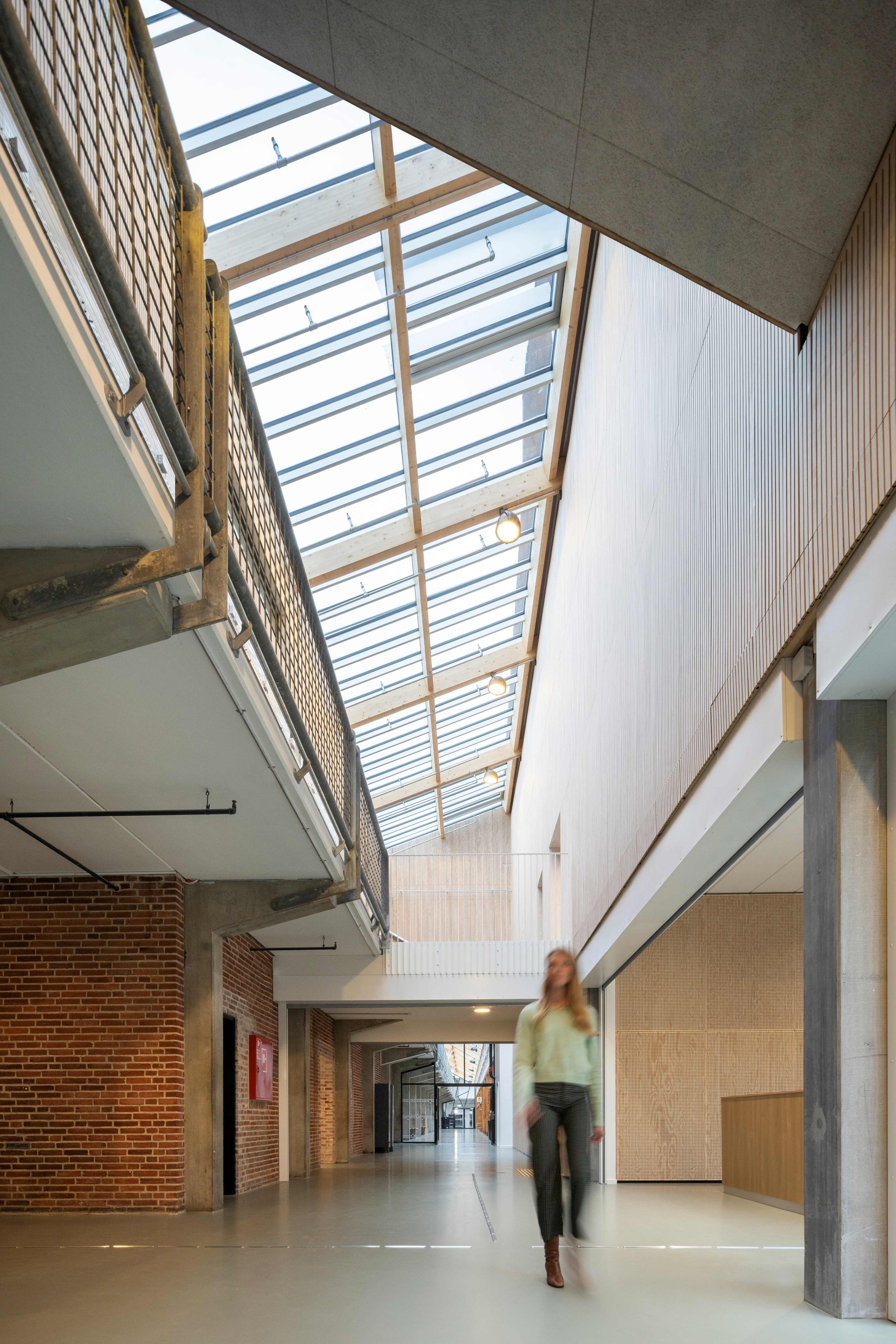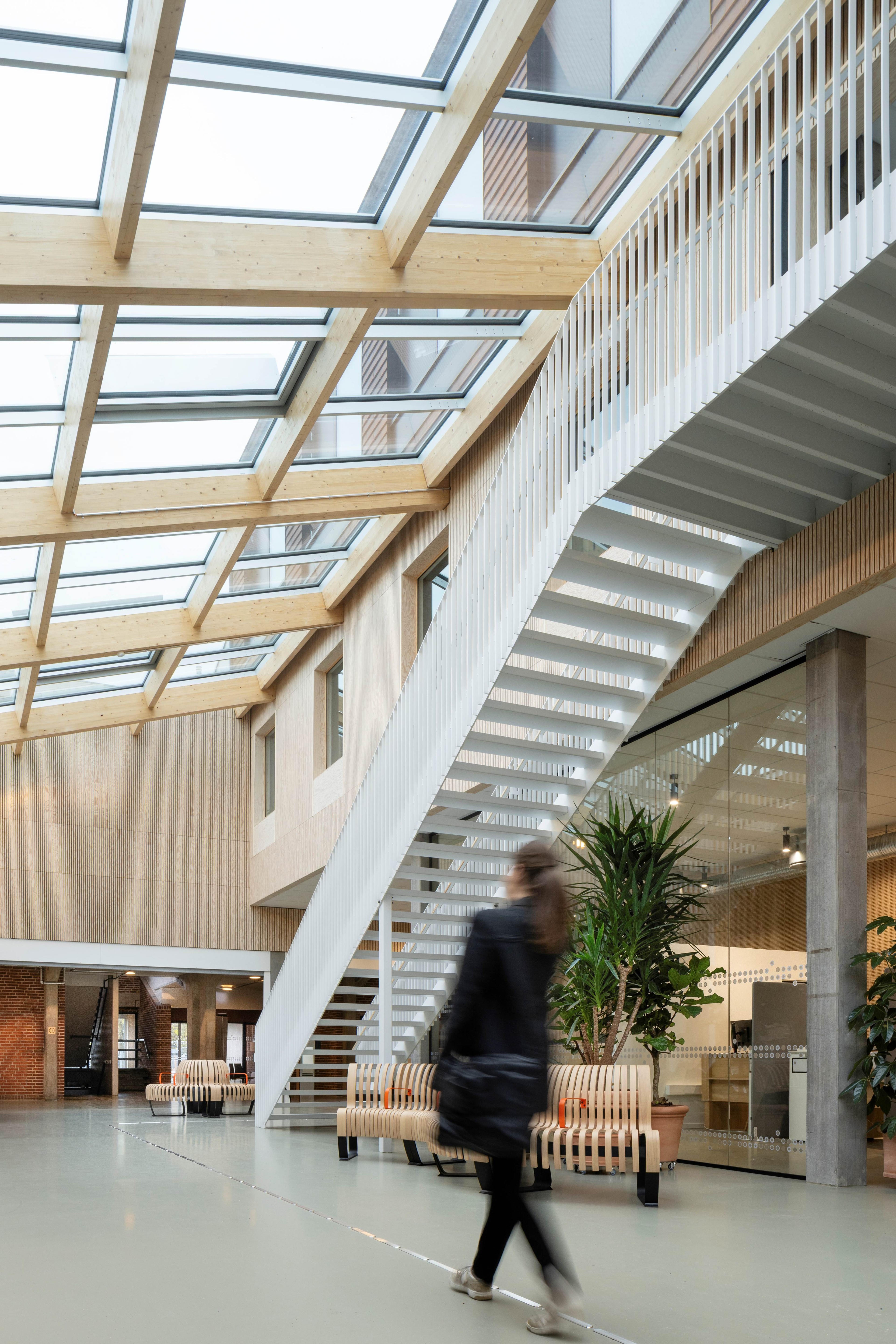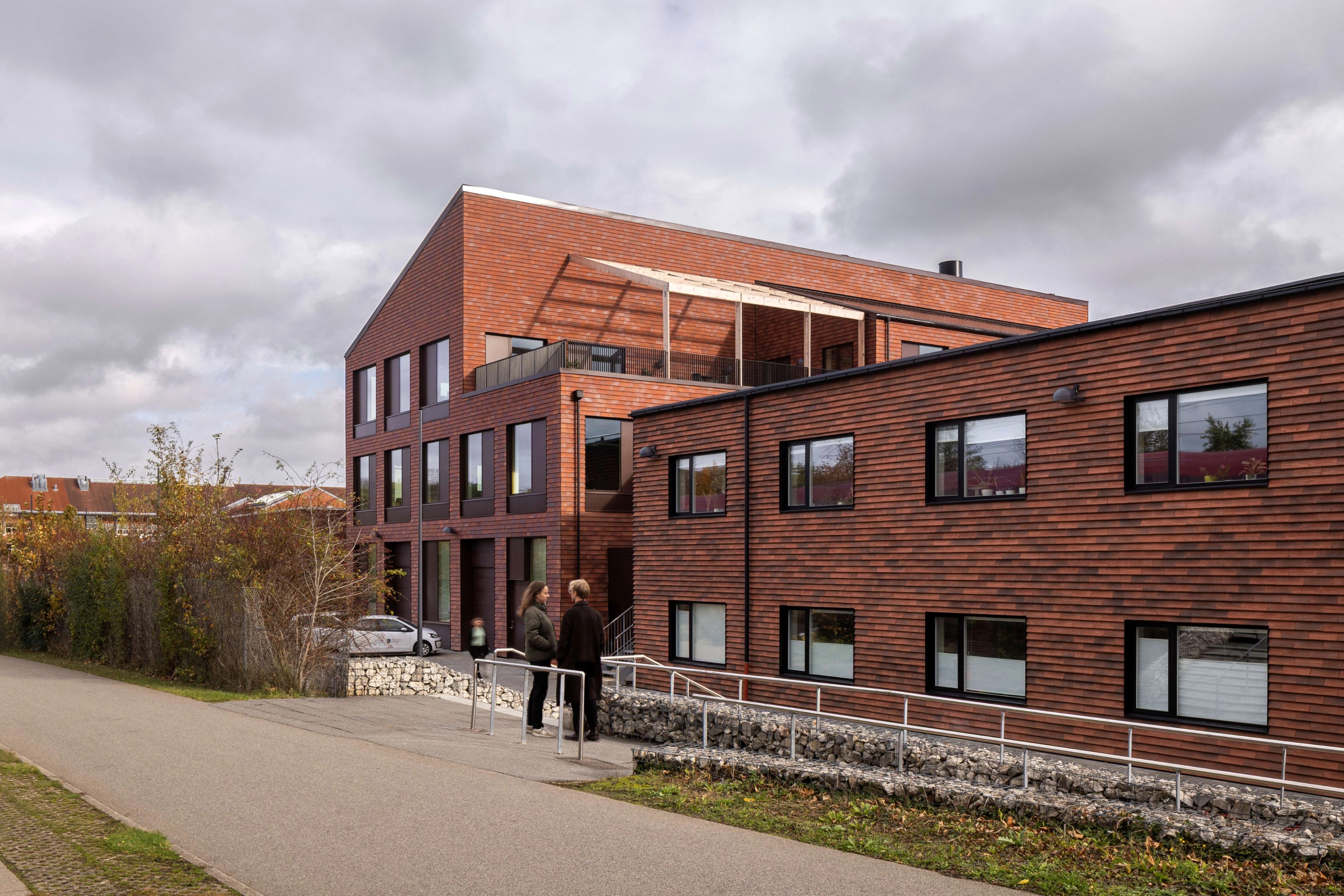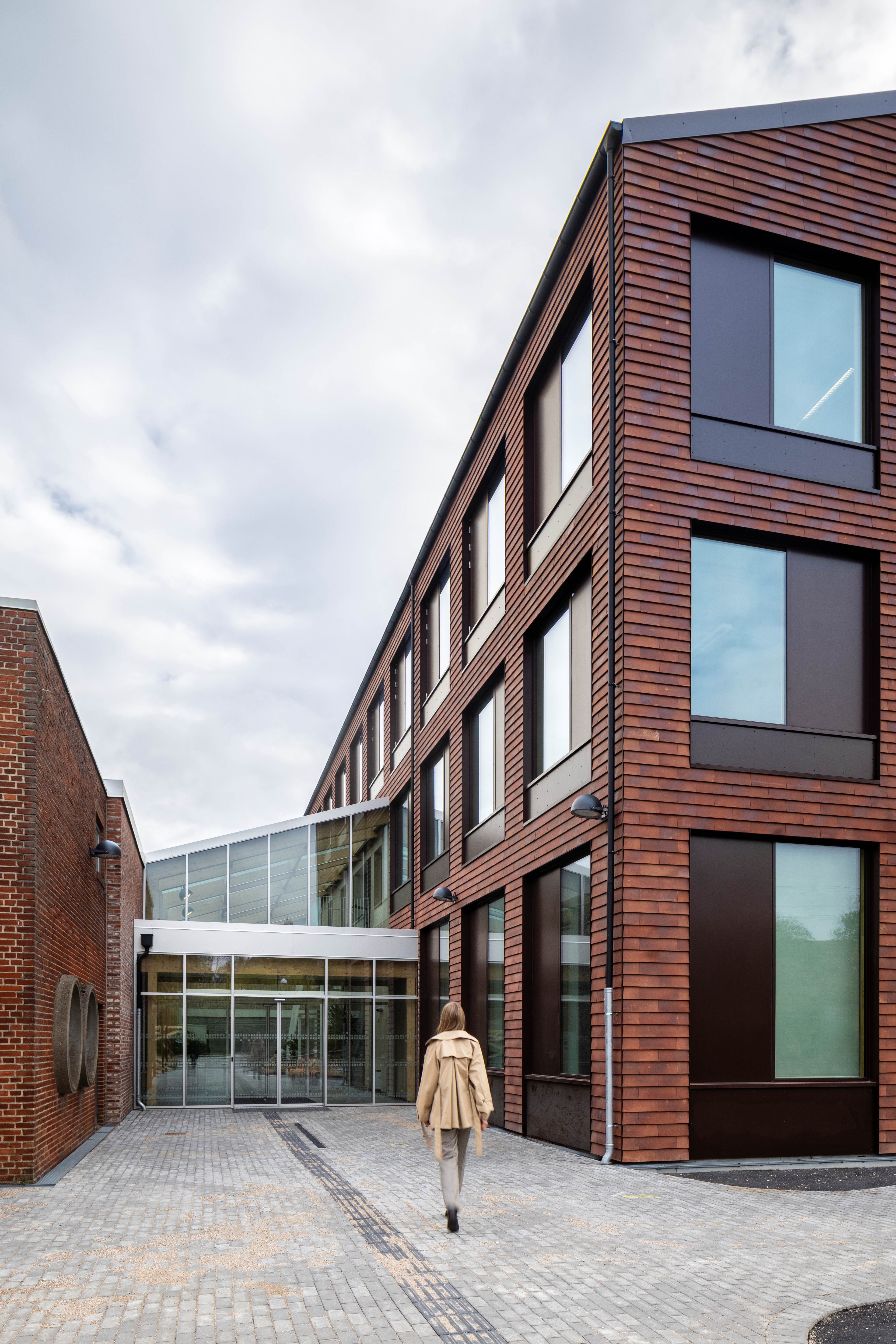 The new addition features red brick façades, pitched roofs, and wooden interiors, bridging old and new. Sustainability is key: the design incorporates CO₂-reducing materials like timber, rooftop solar panels, and durable construction solutions, ensuring a low carbon footprint that meets stringent emissions standards.