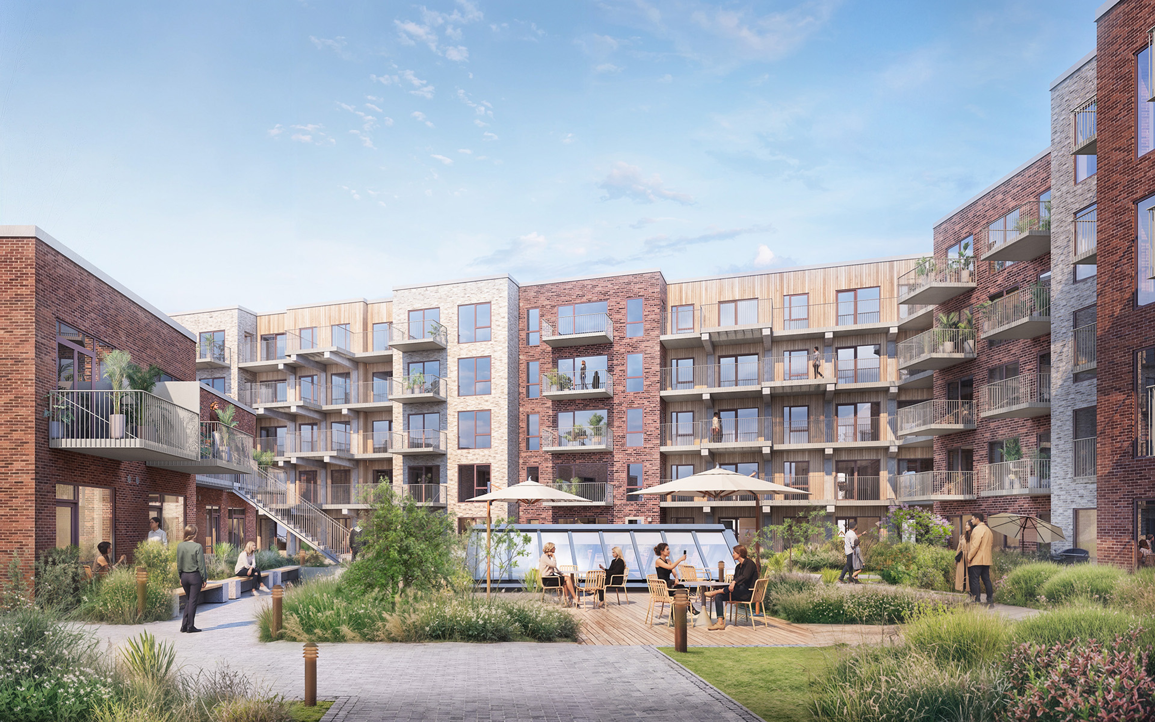 By enhancing the center’s appearance, focusing on more experiences, and integrating it effectively with its surroundings, the project will revitalise Glostrup Shoppingcenter and position it as the go-to destination for both locals and visitors. The redesign features an opened-up façade, with cafés, food court and more facing the street – a natural extension of the urban context. Inside, natural materials reinforce this connection while contributing to a pleasant atmosphere. Finally, the project aims to construct 187 new homes on top of the center, including student housing; a unique feature that contributes to a lively urban environment.