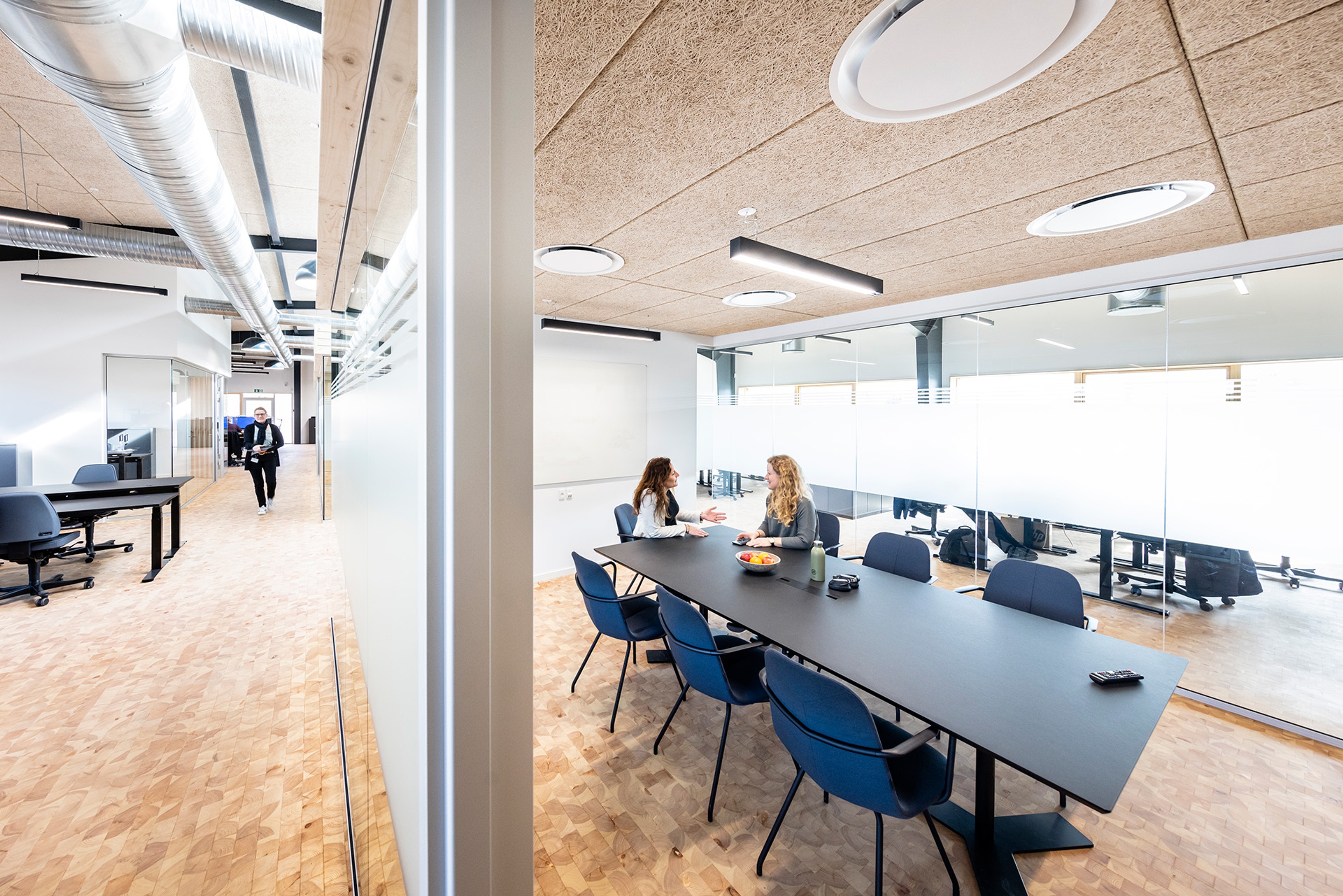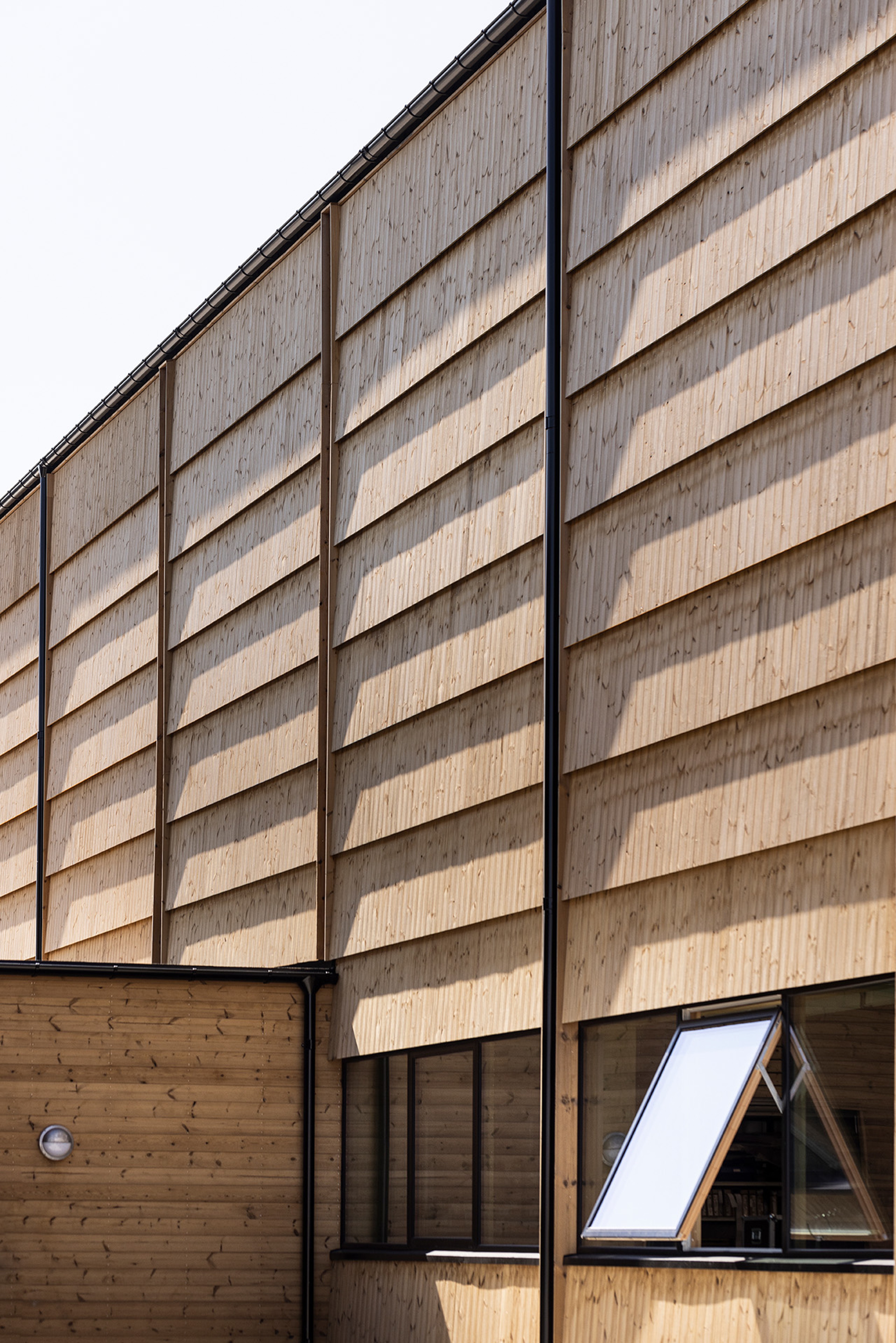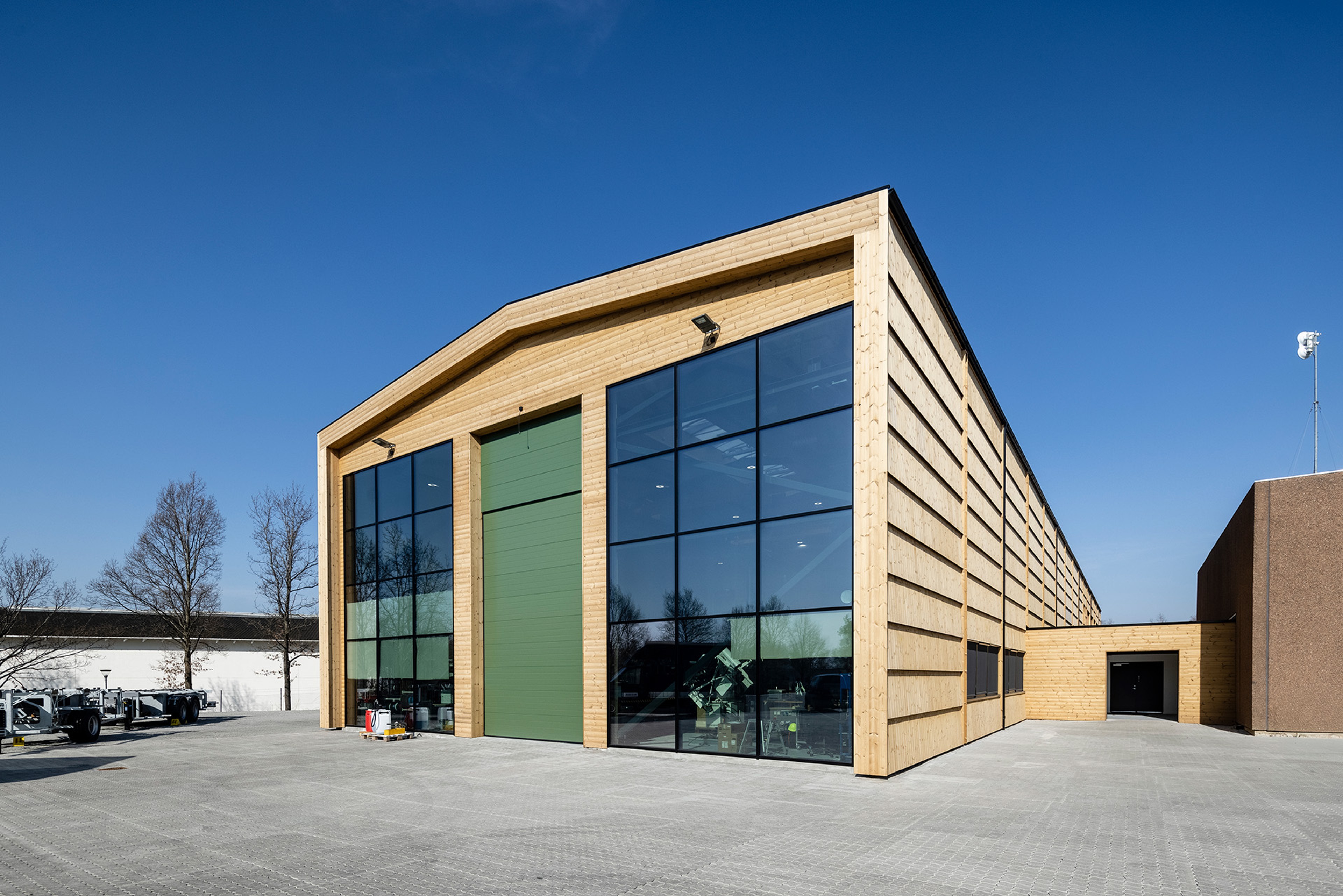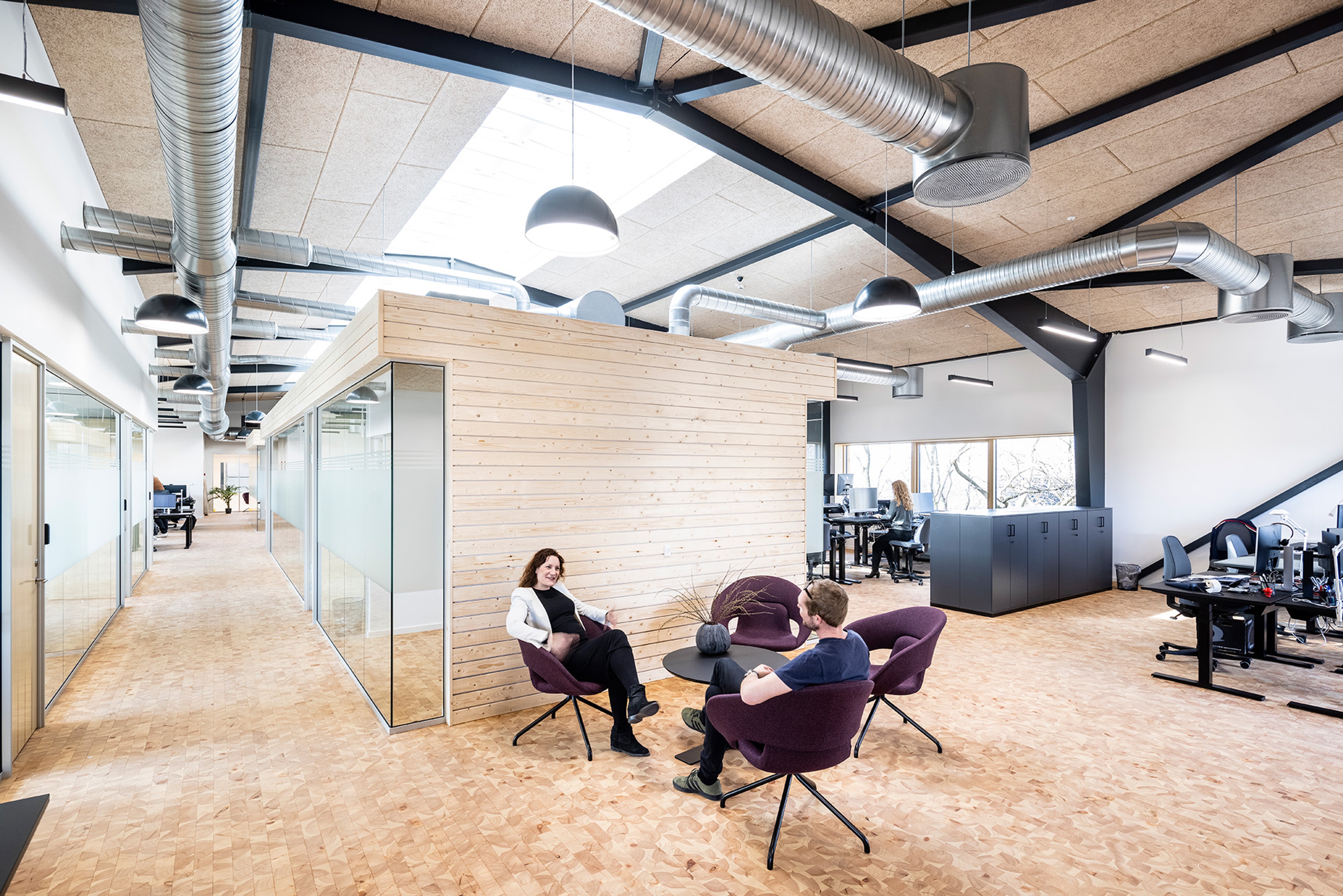 112A production company in the aerospace and defense industry, sought a building to bring development, production, and administration together under one roof. The design emphasizes integration and transparency, strengthening the connection between development and production. The building’s consistent use of wood on the façade, floors, and interior elements serves as a CO₂-reducing measure, while adding a sense of warmth and material coherence throughout.