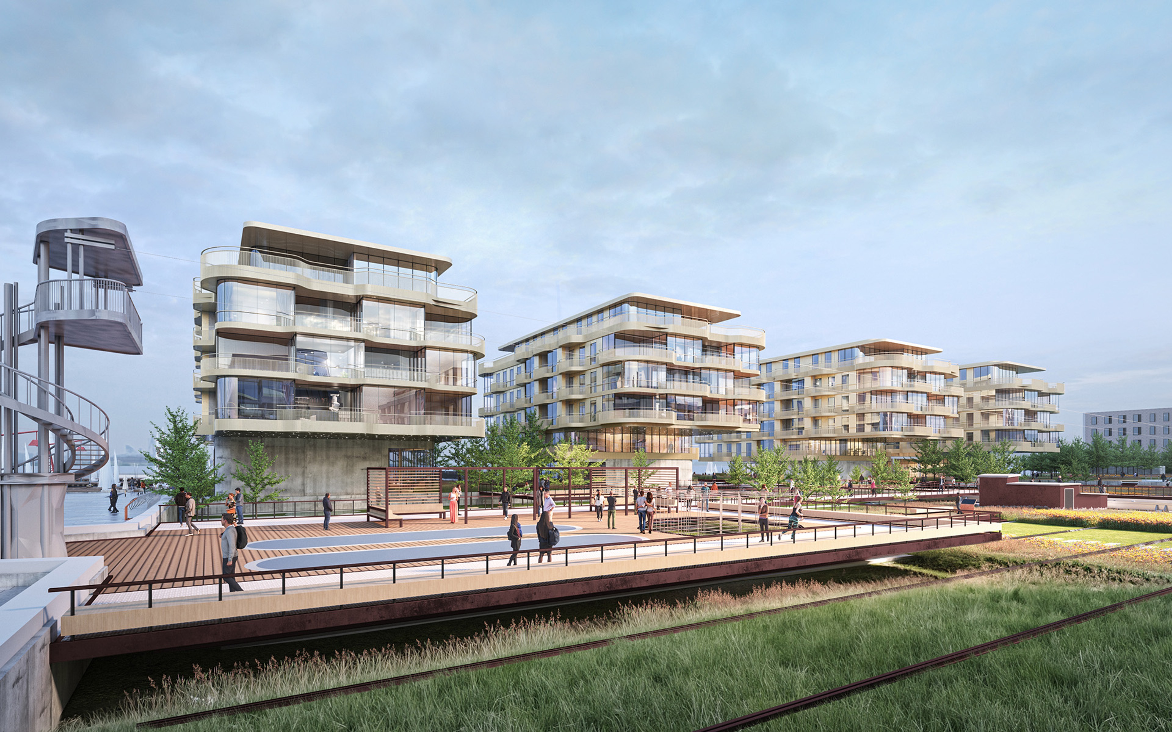 Luxury apartments respecting historical industrial harbor area