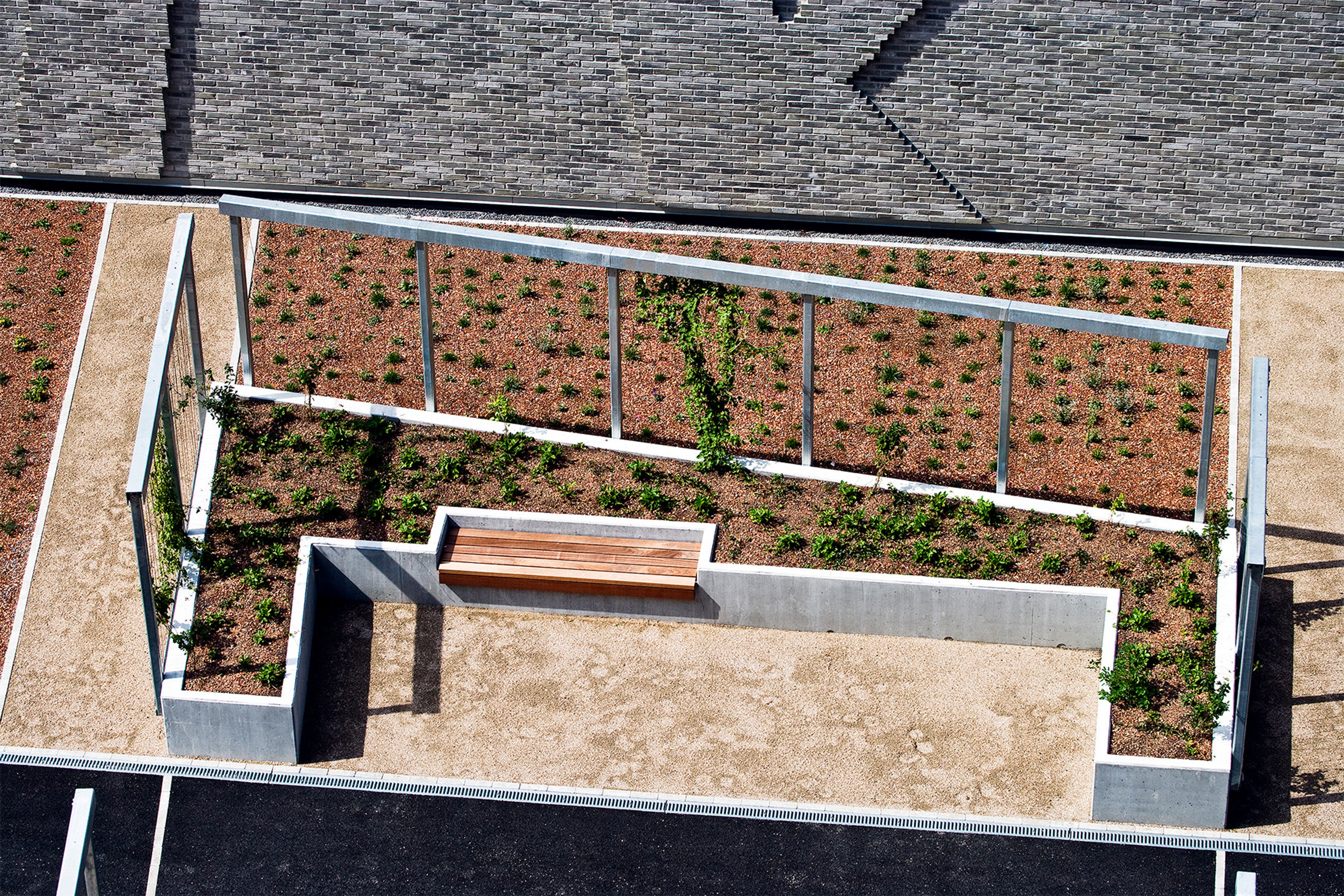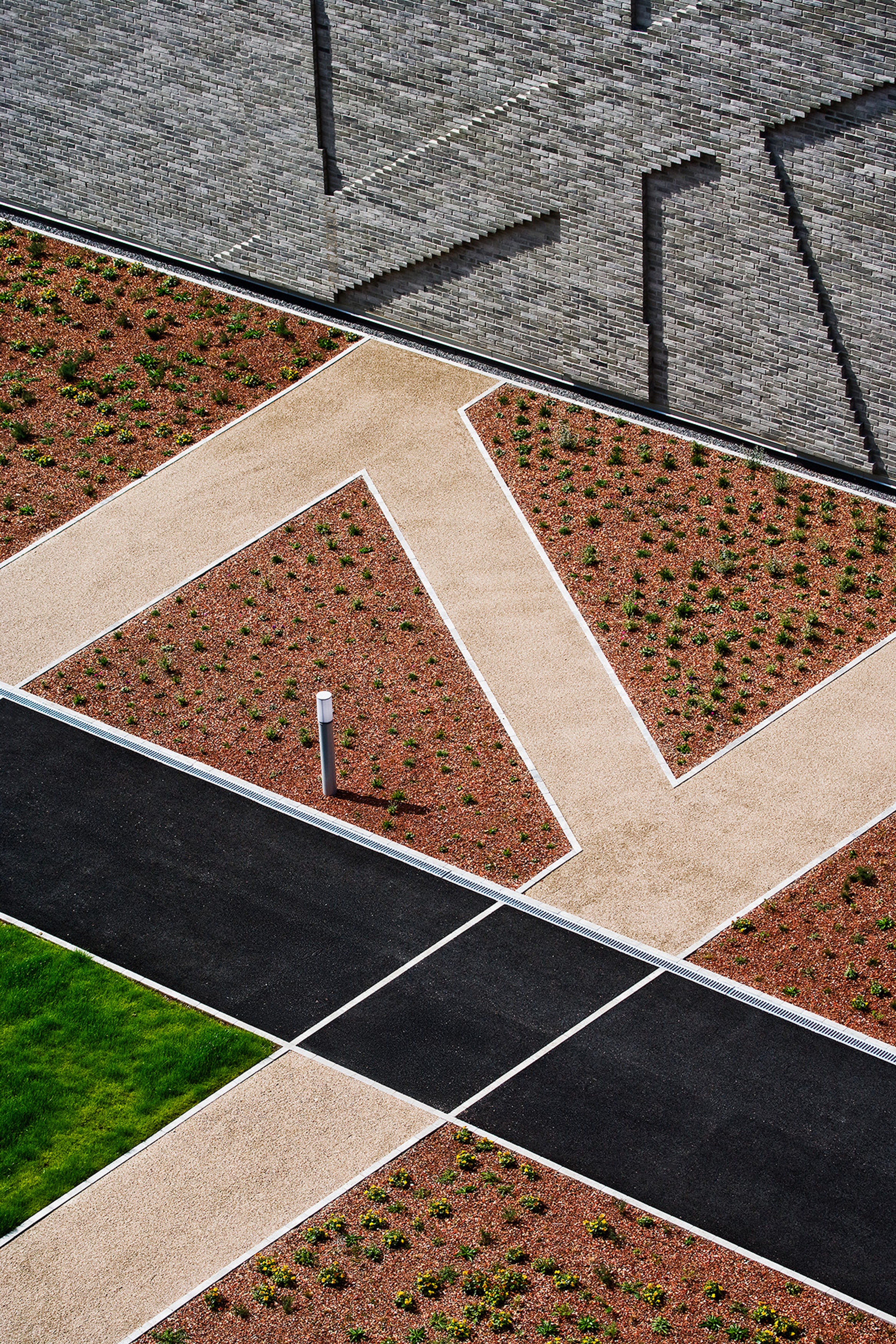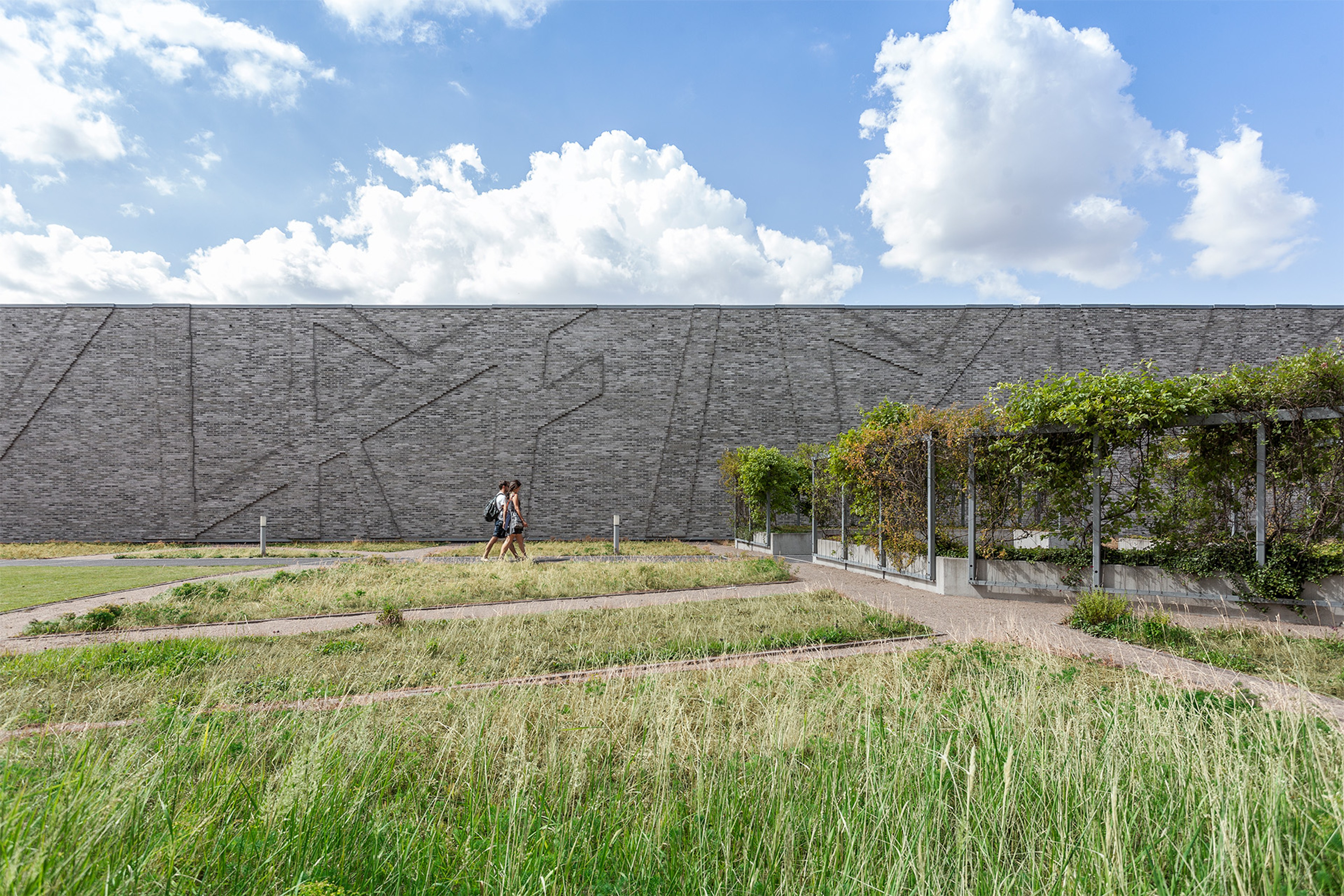 We designed two interconnected, windowless archive towers complemented by a low linking structure that houses a rooftop garden, the "green promenade." This public space not only enriches the urban fabric but also plays a crucial role in climate regulation, rainwater harvesting, and insulation. The unique façade pattern animates the brick surfaces, creating shifting plays of light and shadow, while internally, the same patterns connect spaces.