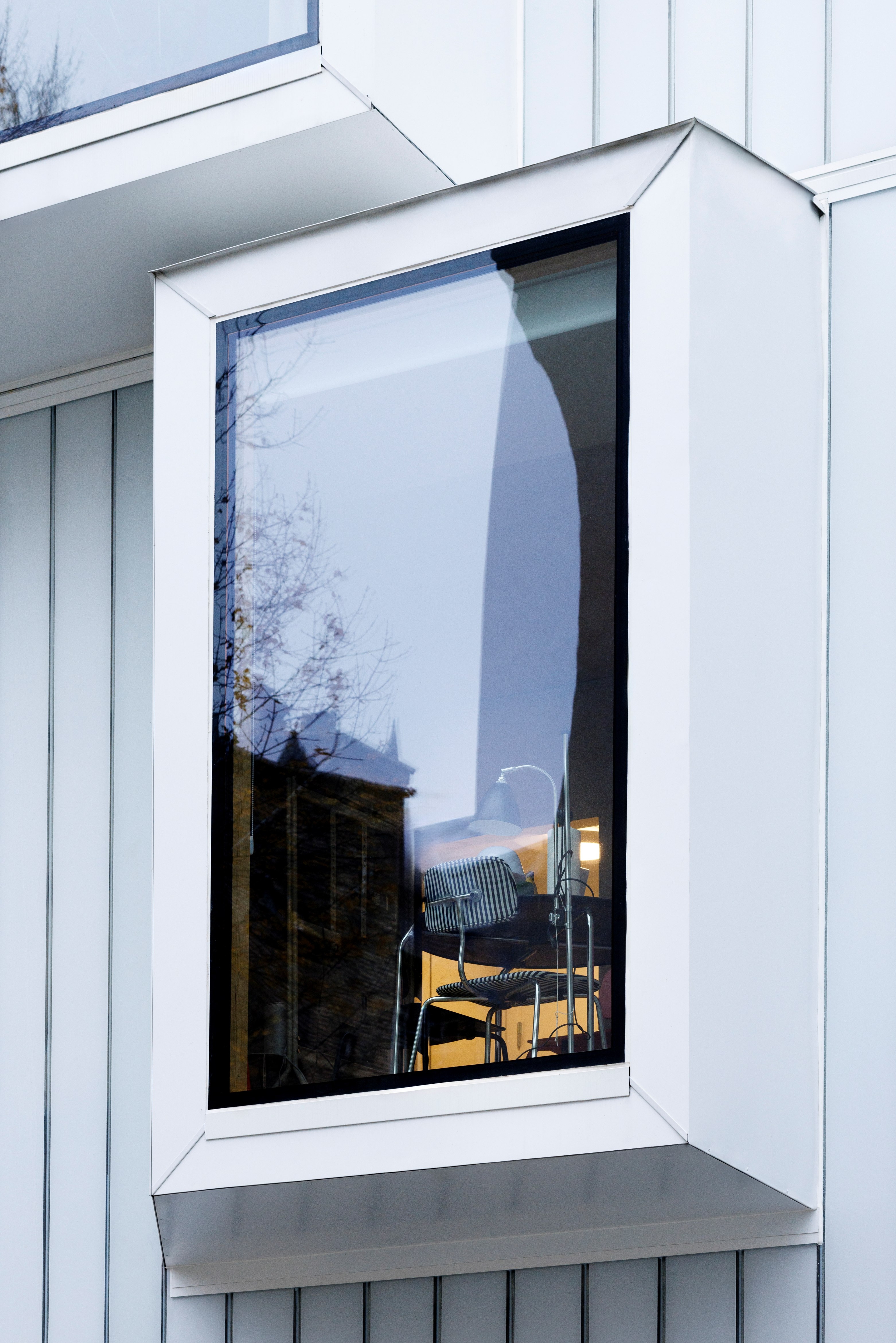 A central design strategy has been to create a building that feels open and like a natural part of the city. Therefore, there are neither fences nor hedges in front of the building, and light materials have been used to contribute to a welcoming expression. The building has been carefully adapted to the block’s architecture, with lines and colours that harmonise with the surrounding buildings.