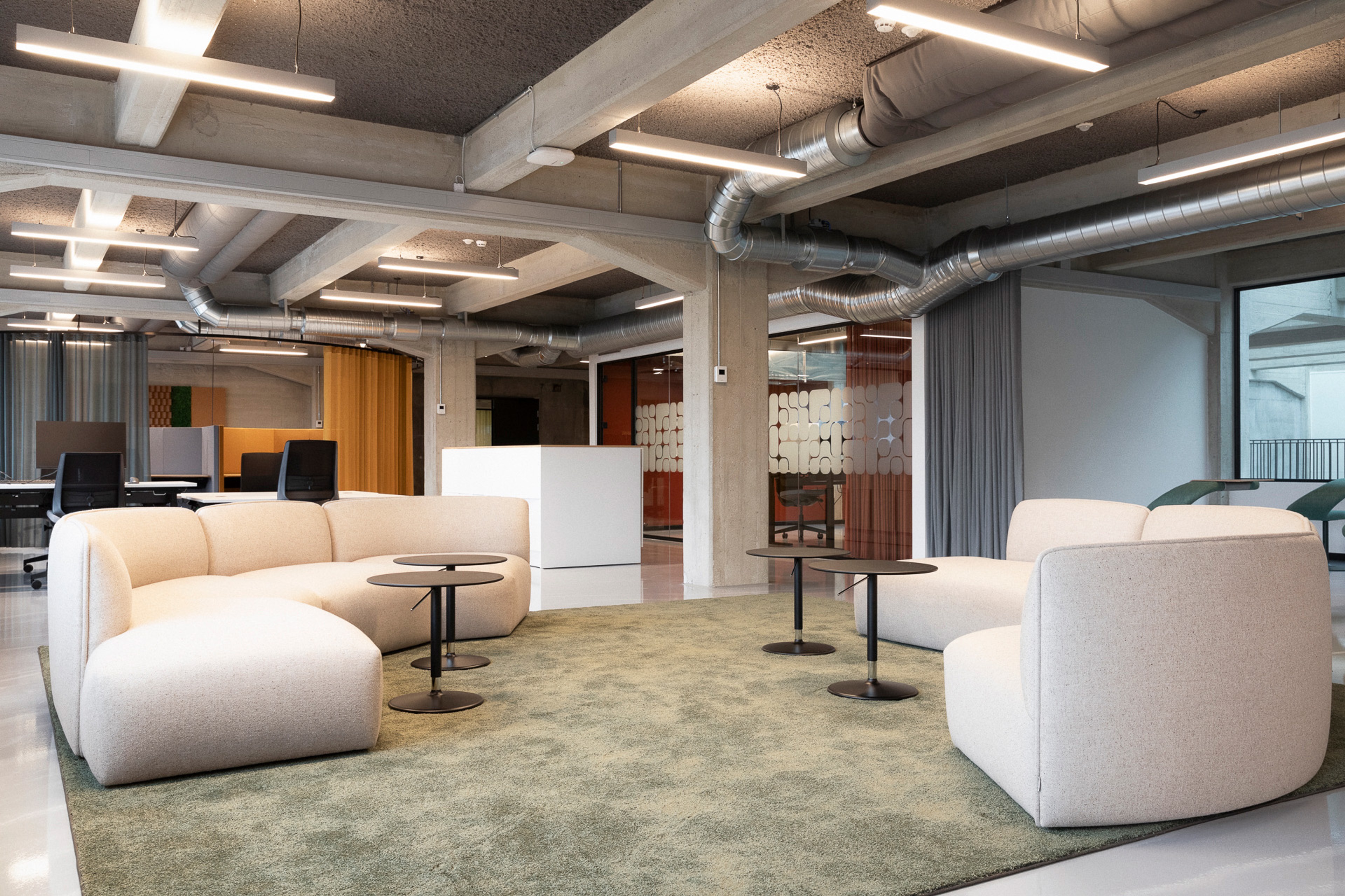 PLH developed a comprehensive design centered on "juxtaposition" – strategically leveraging contrasts to create value. The raw and industrial architecture of the building was preserved and enhanced, while twoday’s vibrant brand identity was translated into a dynamic and inclusive workspace.