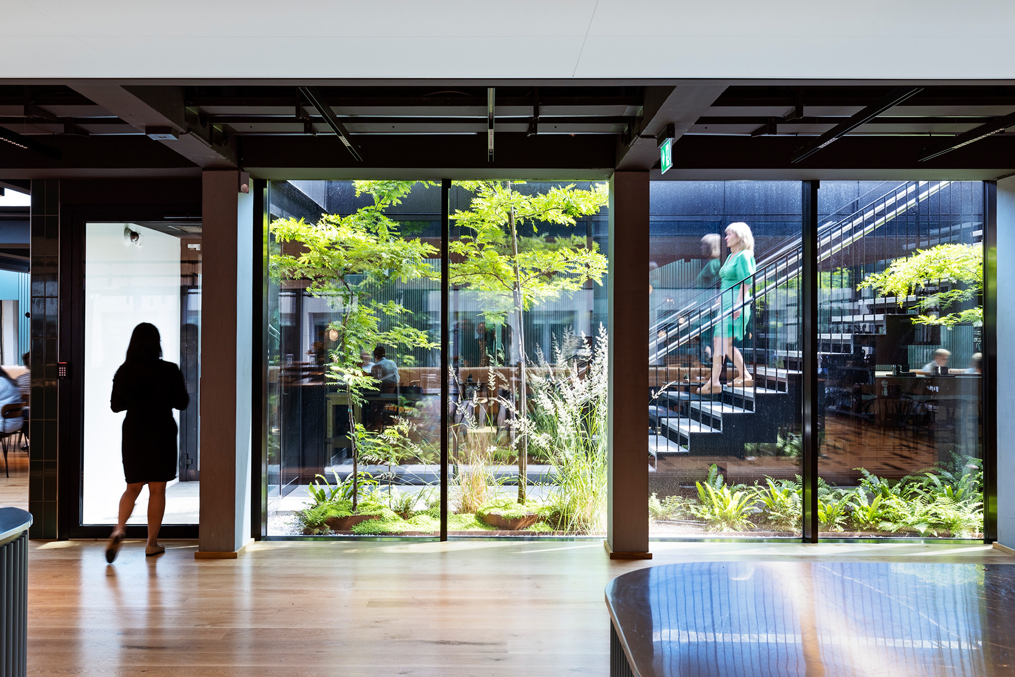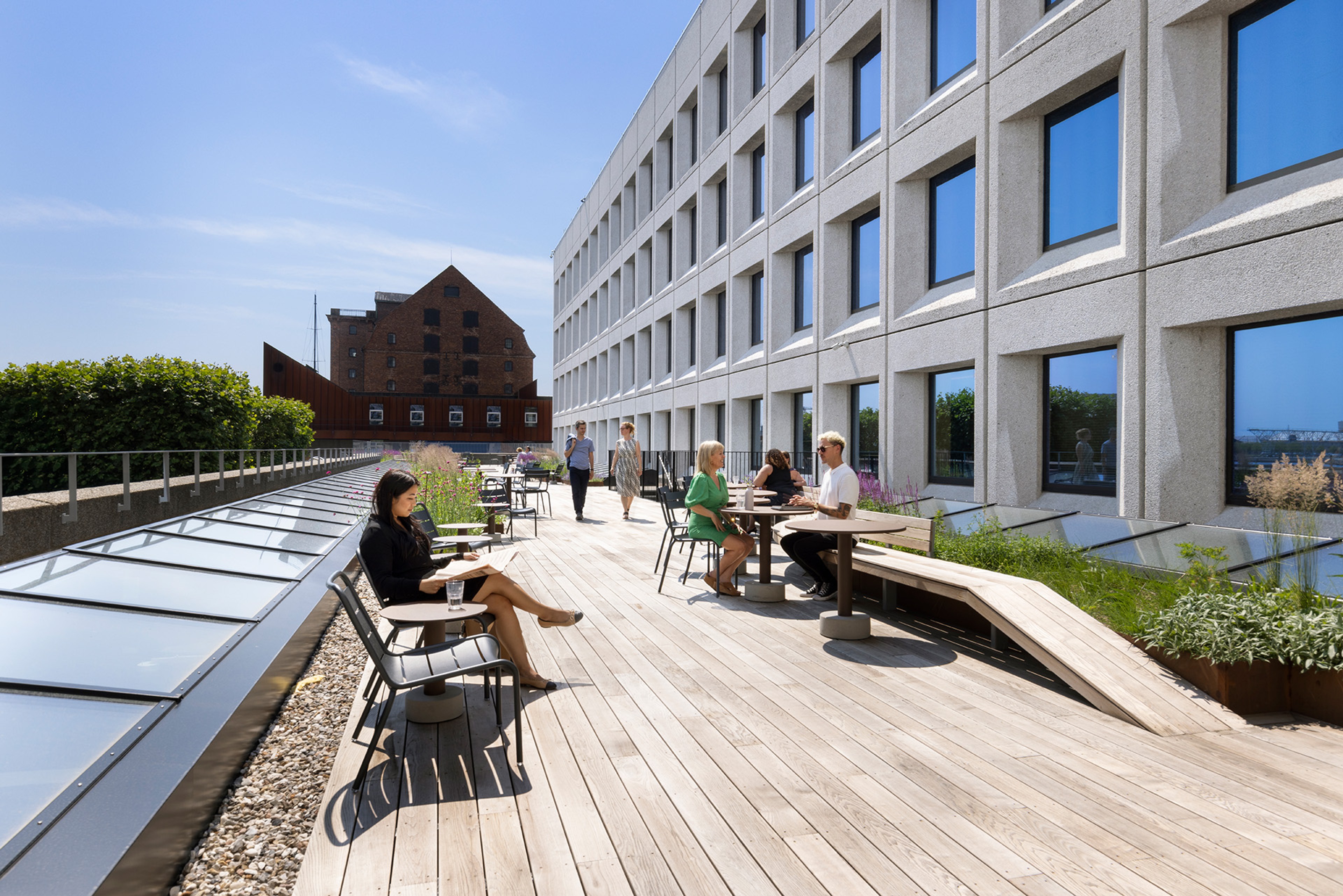New skylights and a central conservatory strengthen the connection between indoors and outdoors. An intelligent lighting system creates dynamic zones that adapt to the time of day. The result is a flexible and inviting space that enhances well-being, productivity, and interaction – well beyond the lunch hour.