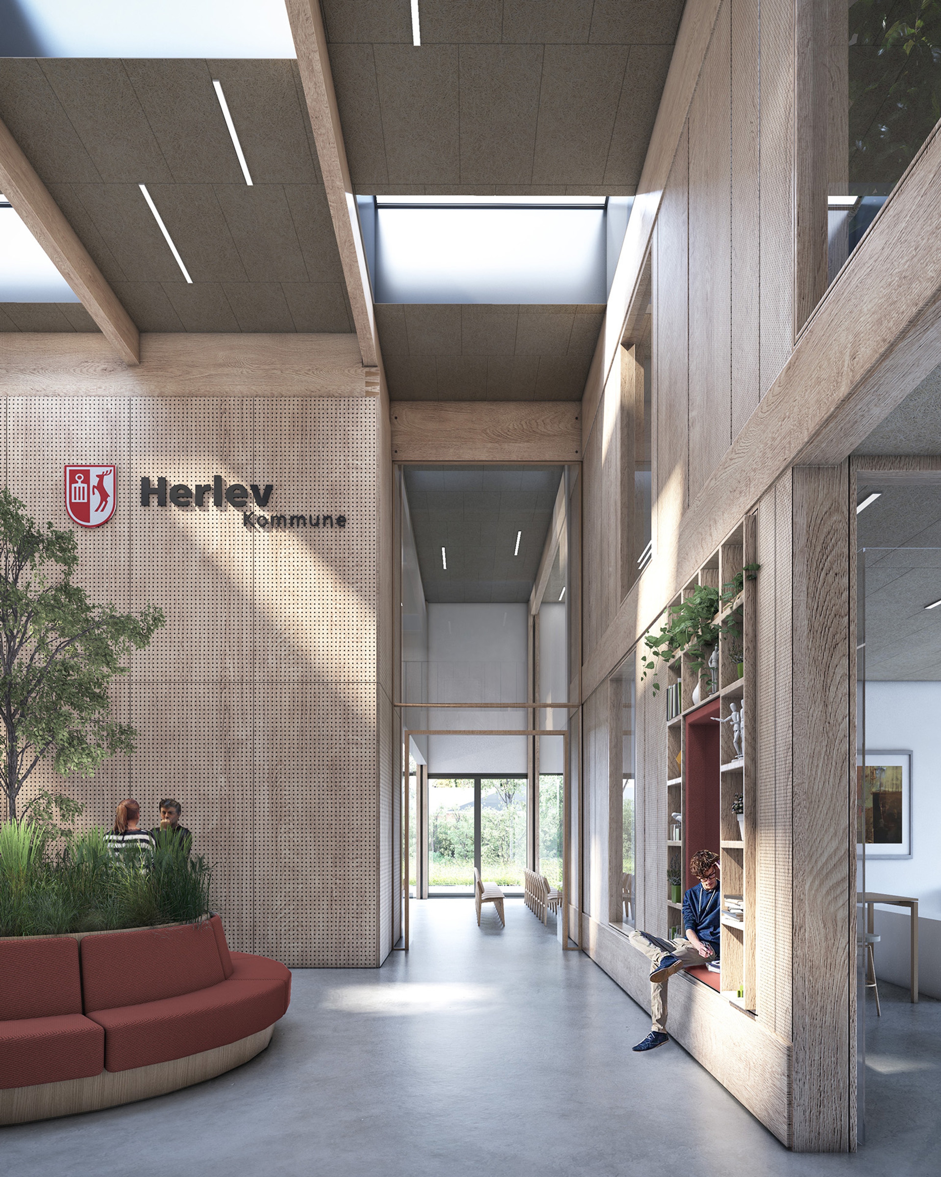 Embraced by the lush park, the building harmonises with its surroundings through green roofs, energy-efficient systems, and biodiversity-enhancing landscaping. With flexible workstations, climate conscious choice of materials, and community-centric spaces, Hjortespring City Hall sets a benchmark for resilient civic architecture.