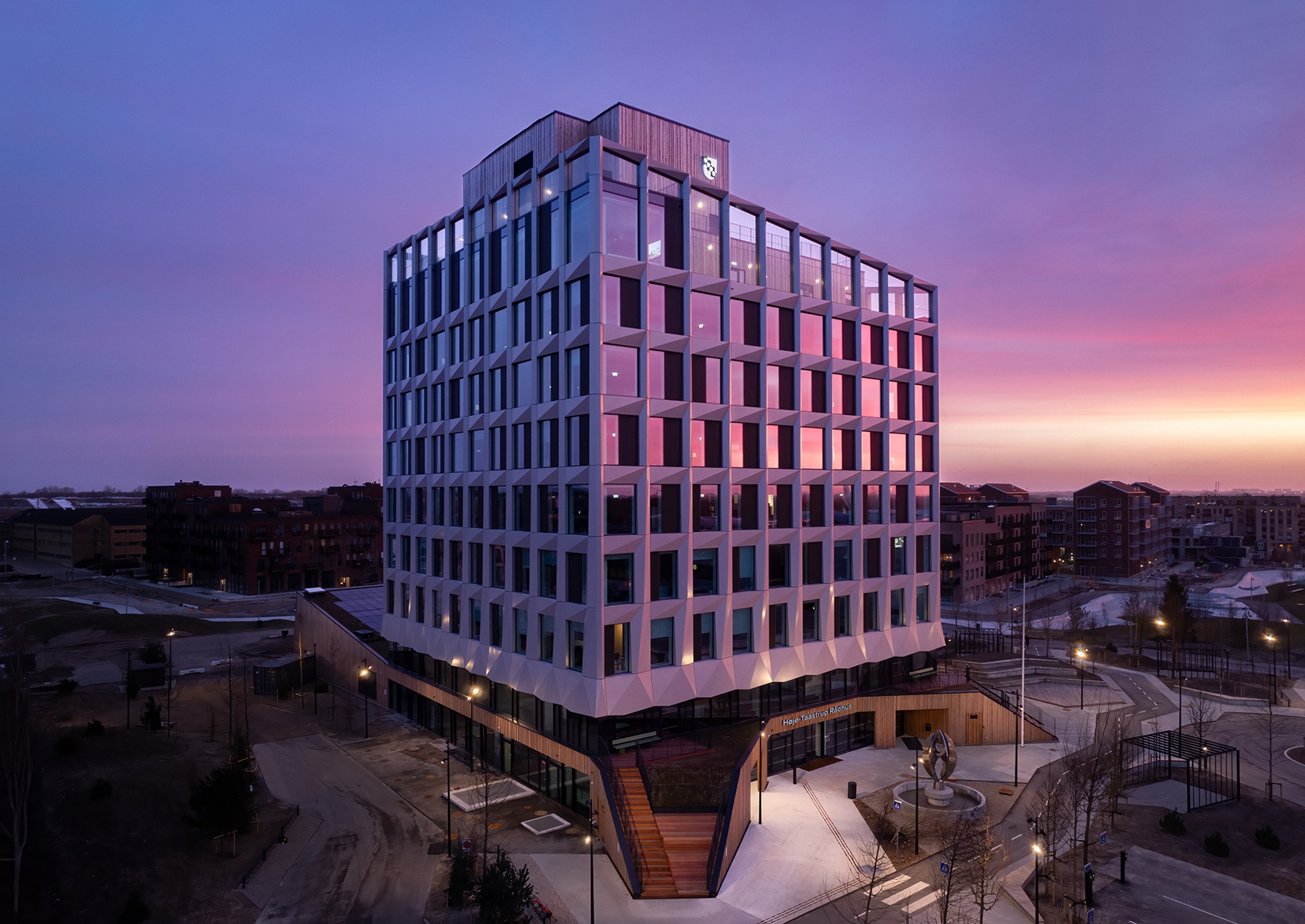 Kurt Scheelsbeck, Acting Mayor of Høje-Taastrup MunicipalityThis city hall is a prominent landmark in our new district Høje-Taastrup C and at the same time a truly exciting building with lots of new possibilities for both employees and citizens. It is a citizens' house, where associations have opportunities like borrowing the council chamber or meeting rooms for events. It is a modern, flexible workplace where we can serve citizens and work in many different ways. And sustainability is at the forefront as seen in the reuse in the construction, solar cells on the roof and a sound operating economy going forward.